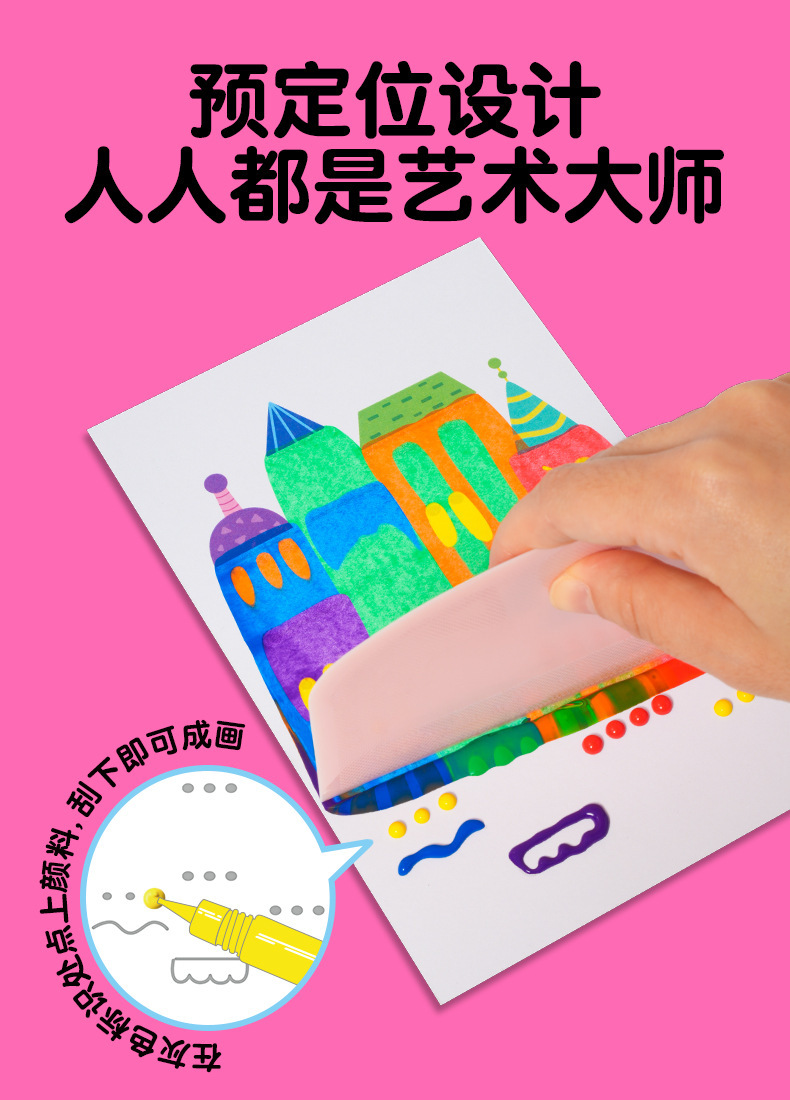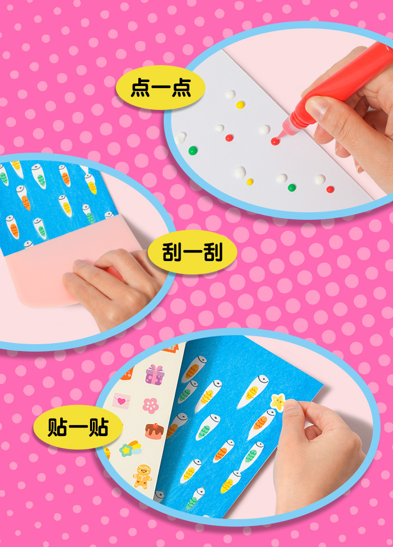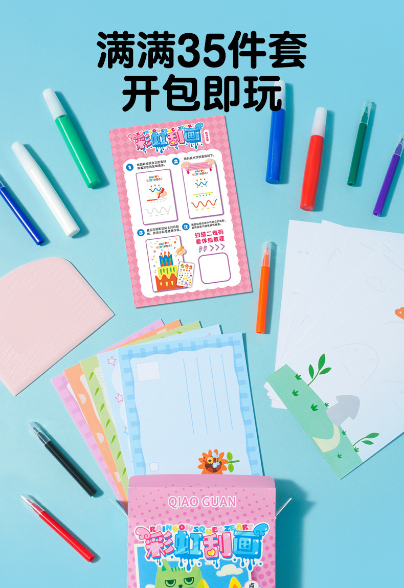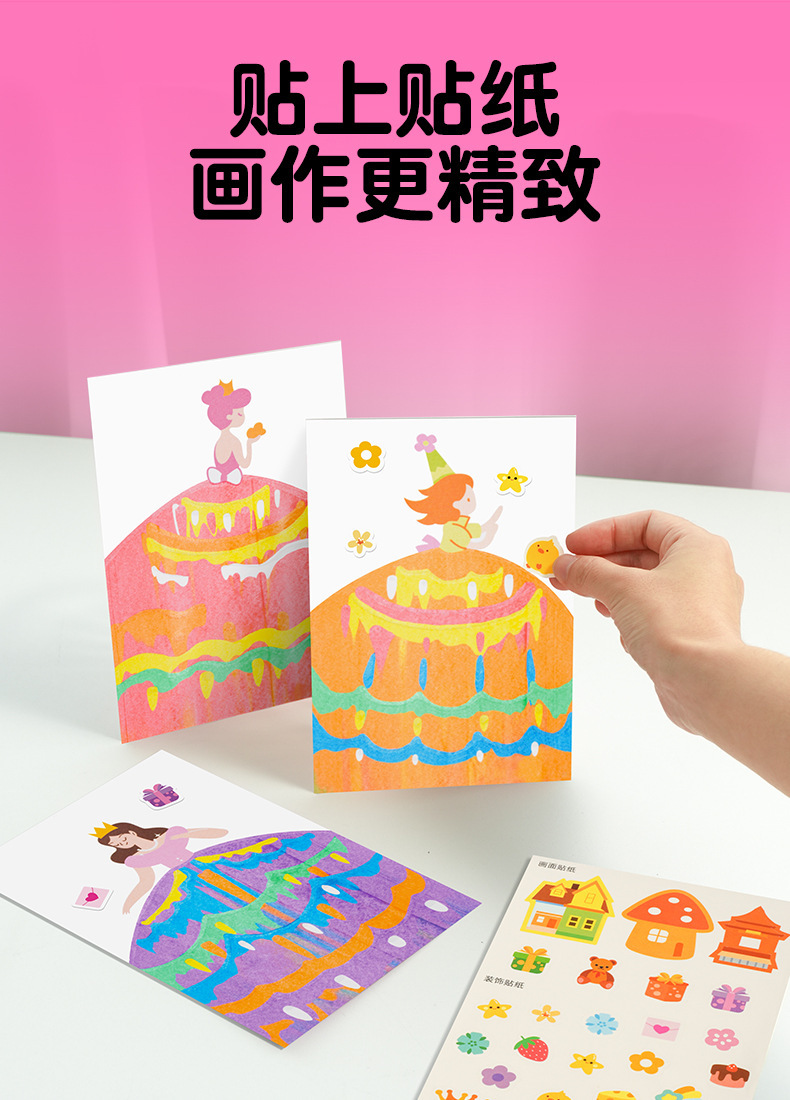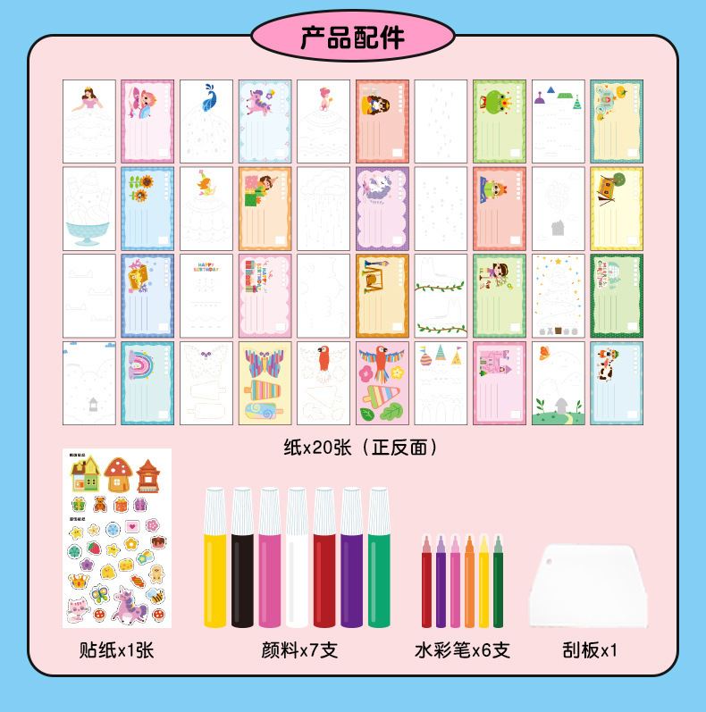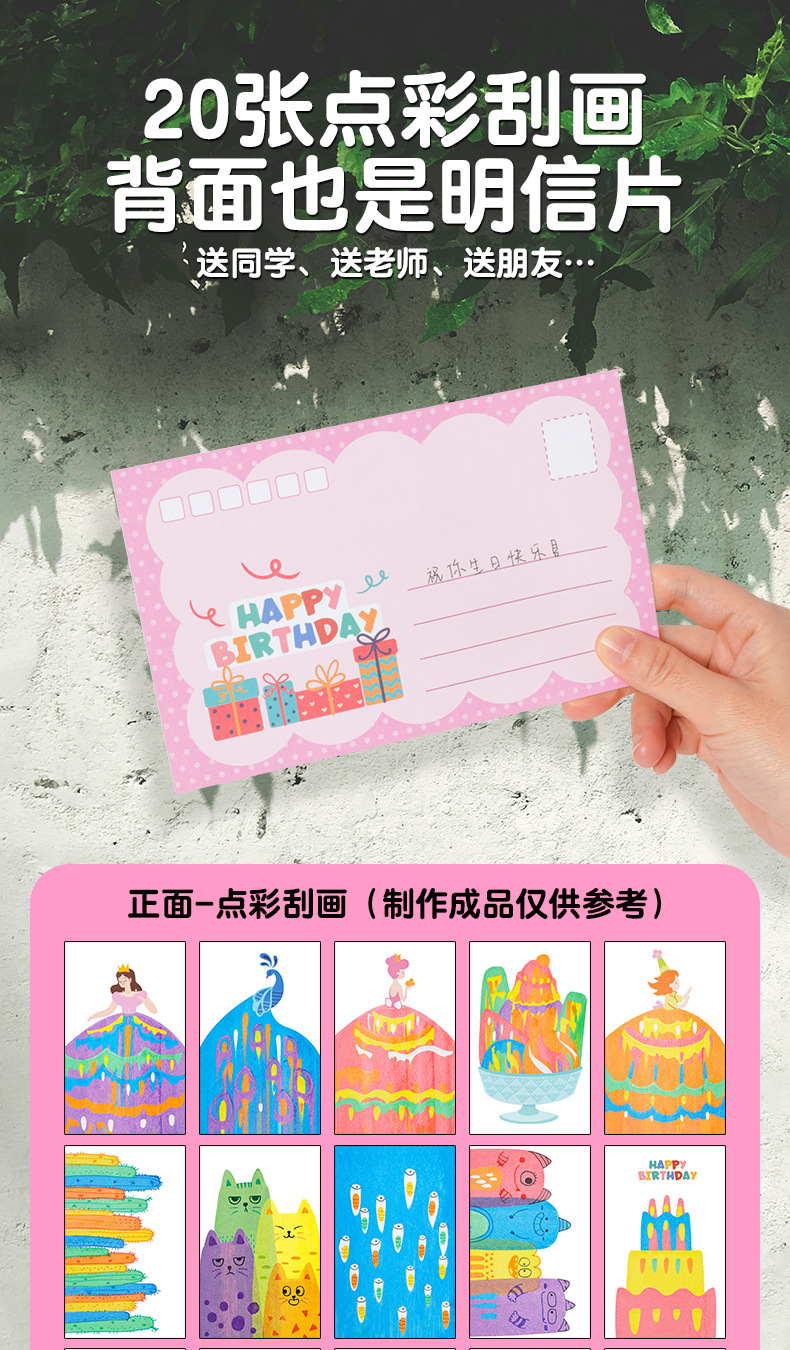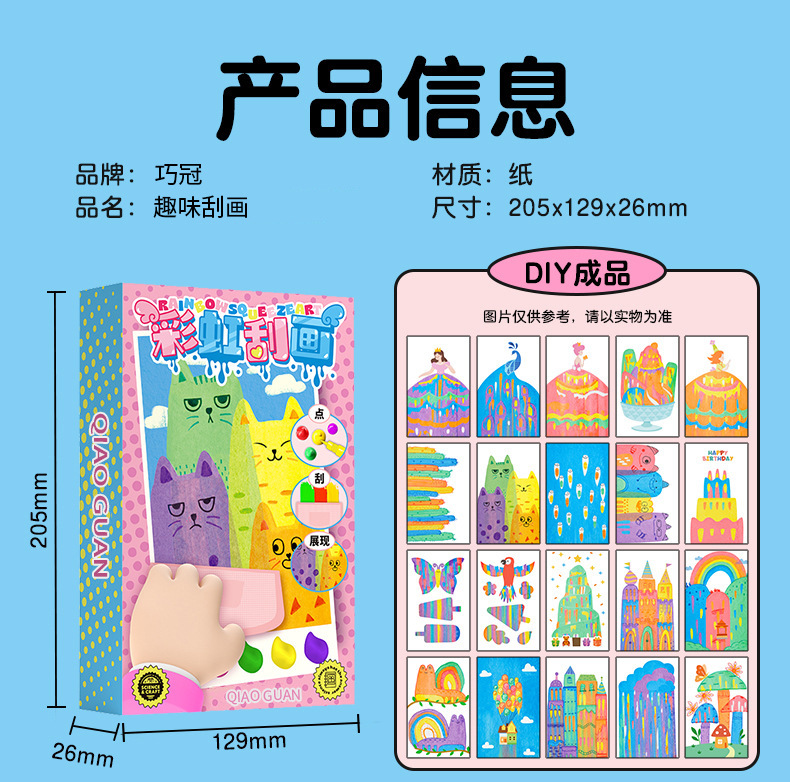 新款彩虹点彩刮刮画儿童diy手工颜料彩色画纸小女孩玩具明信片