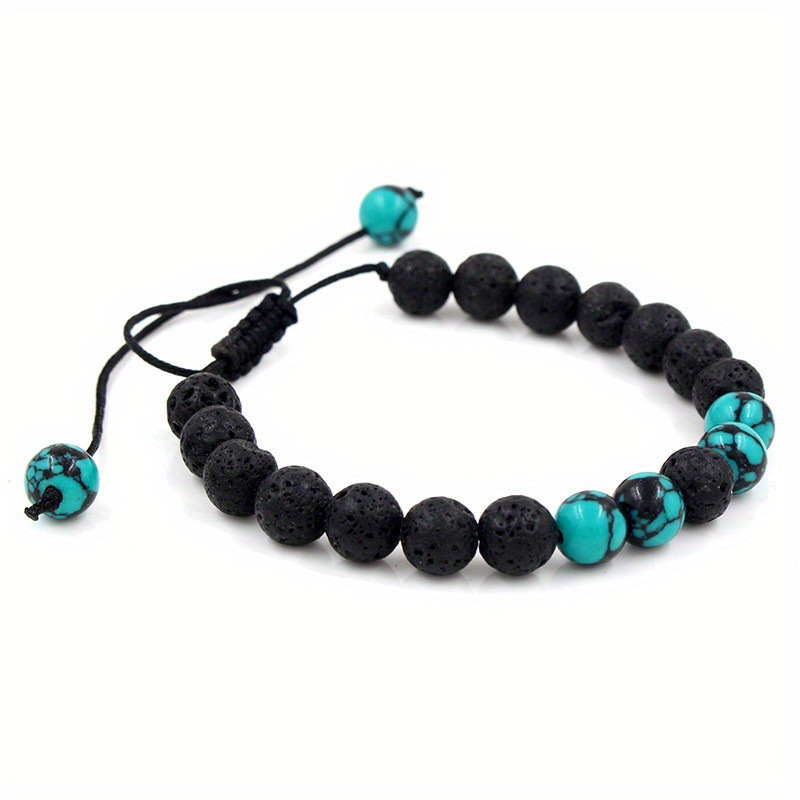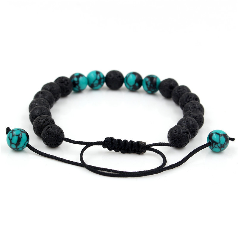 外国貿易の熱い販売の溶岩の火山石は青い松石の復古の潮流の個性の手の串のブレスレットの卸売りを編みます。