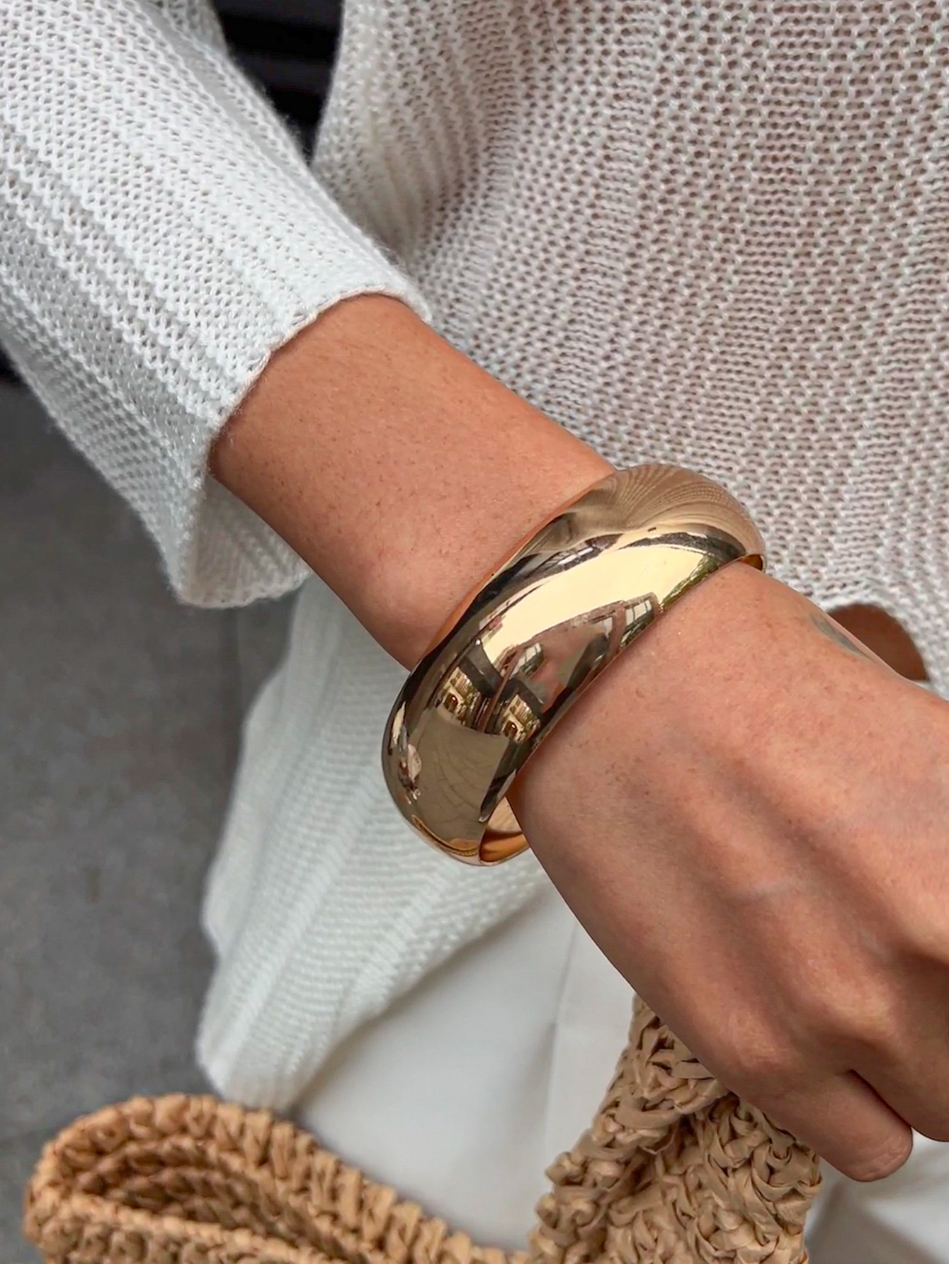 欧美跨境 简约光面合金手环 曲面手镯 锤纹金属不规则宽面手镯