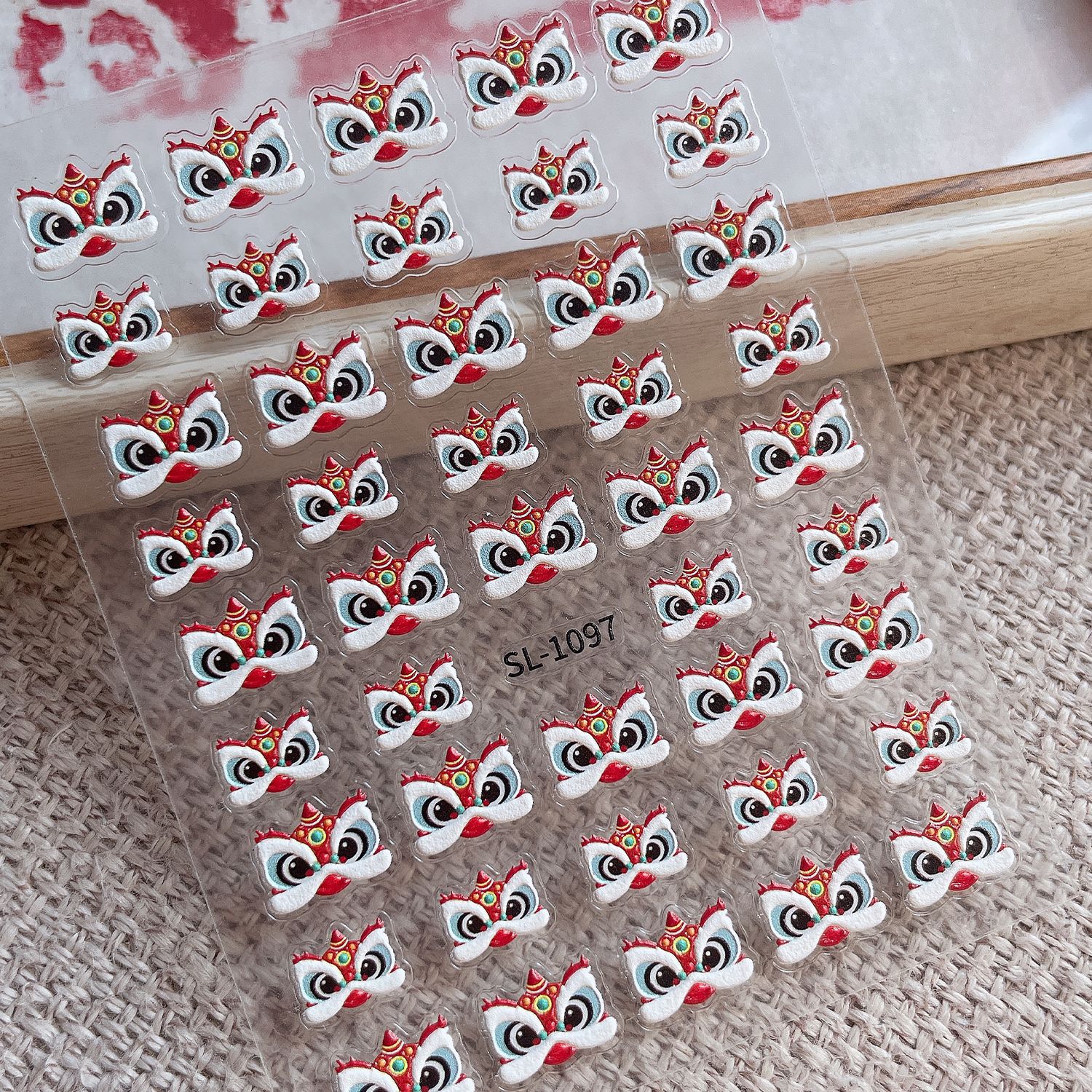 春節獅子舞ネイルステッカー 5D立体新年中国風獅子舞DIYネイルステッカー飾り SLタイプ