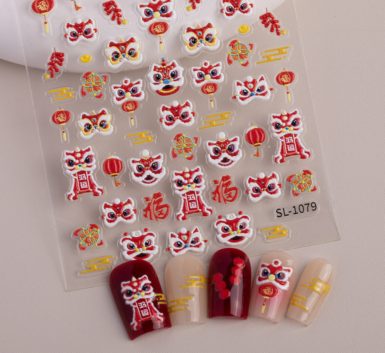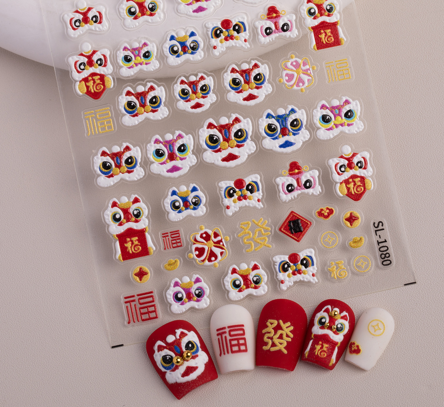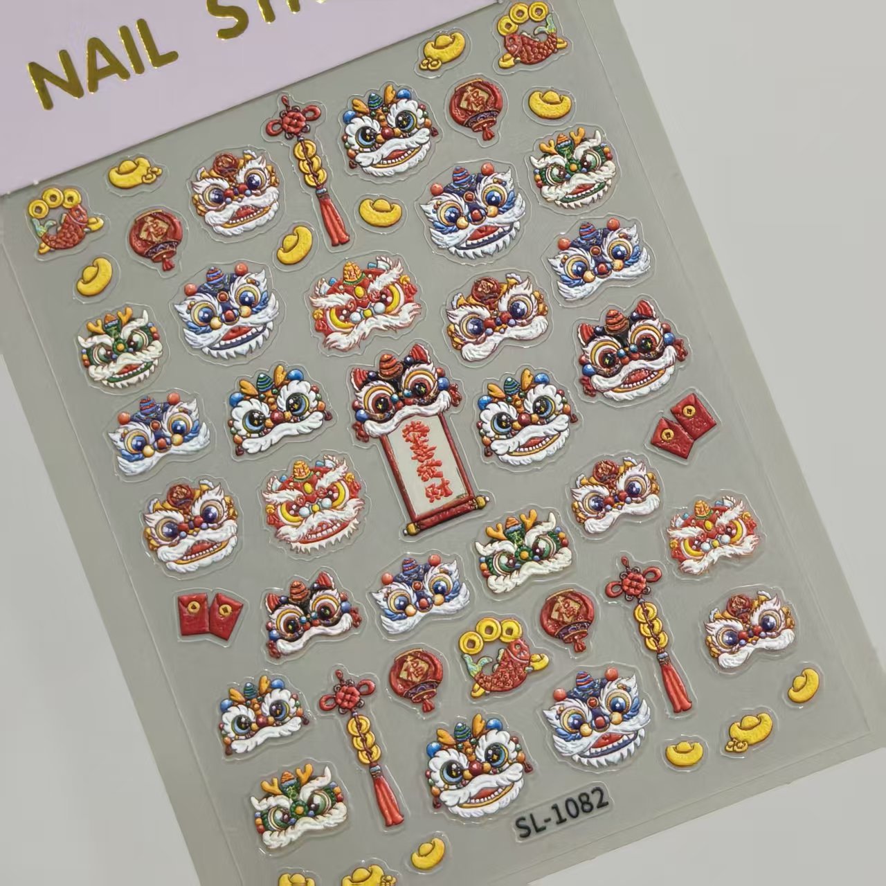 新年獅子舞ネイルステッカー 5D立体浮き彫り 国潮風 財運獅子舞 DIYネイルステッカー アクセサリー SLタイプ