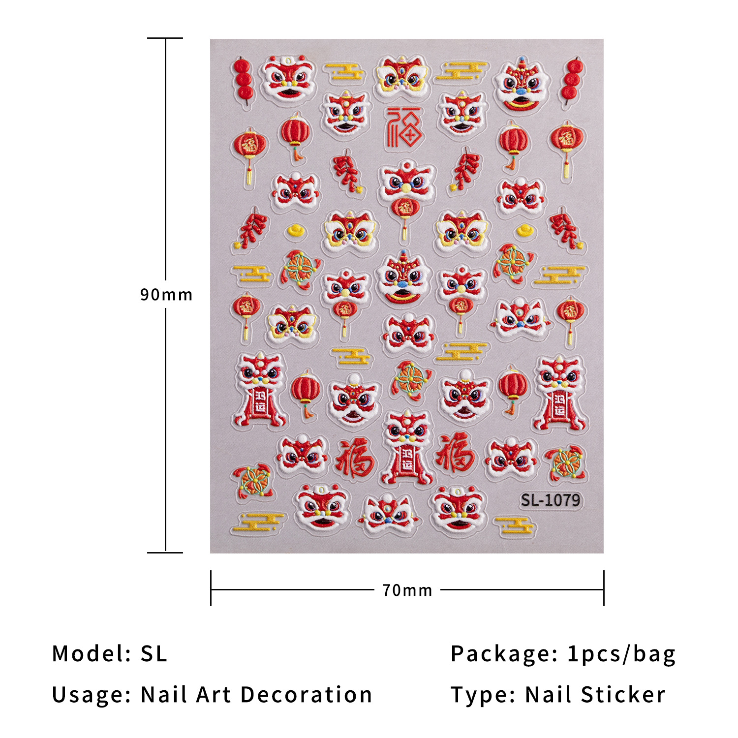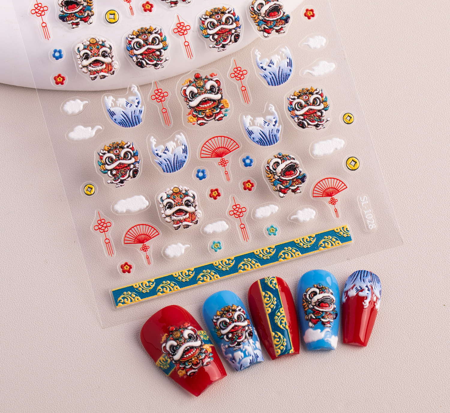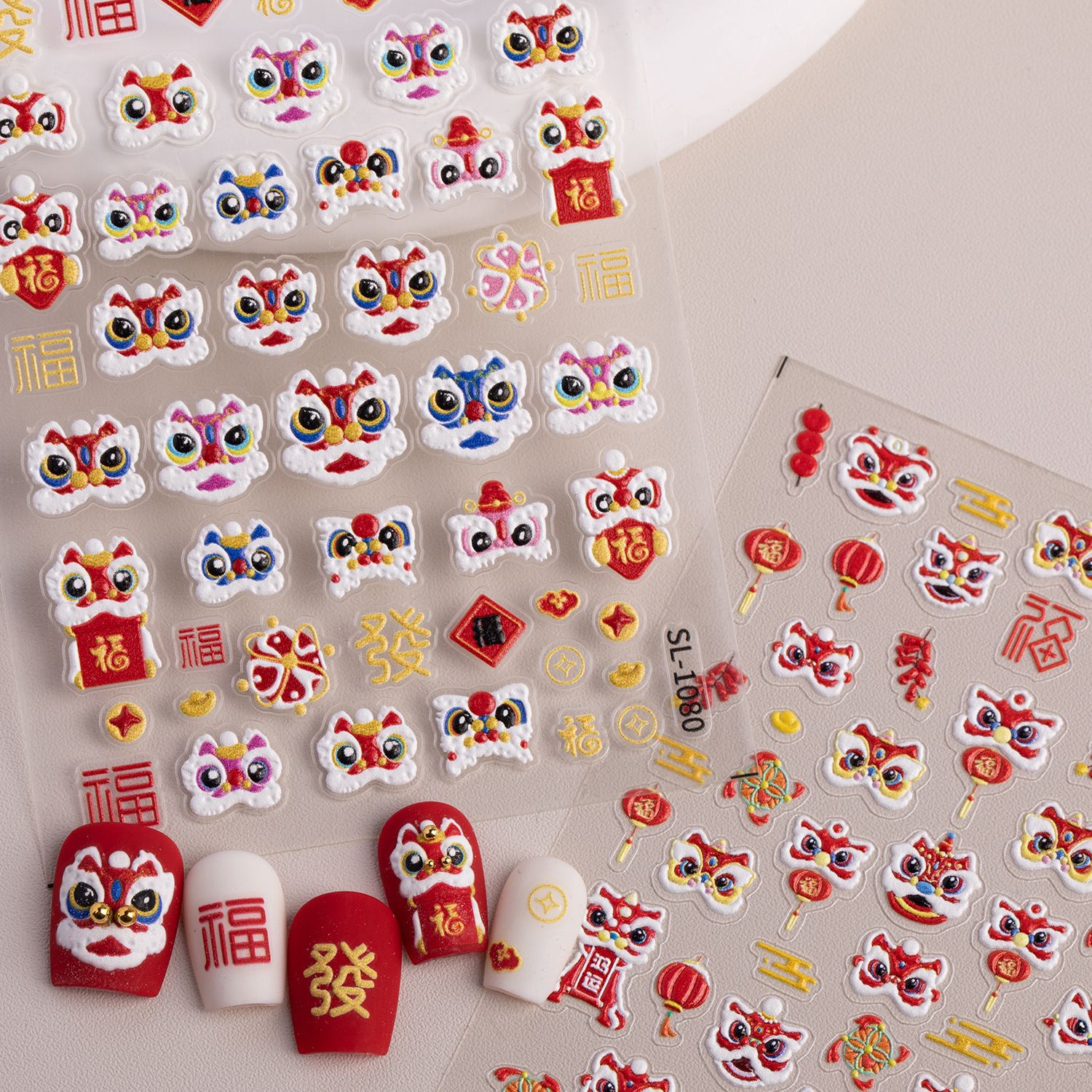 新年獅子舞ネイルステッカー 5D立体浮き彫り 国潮風 財運獅子舞 DIYネイルステッカー アクセサリー SLタイプ