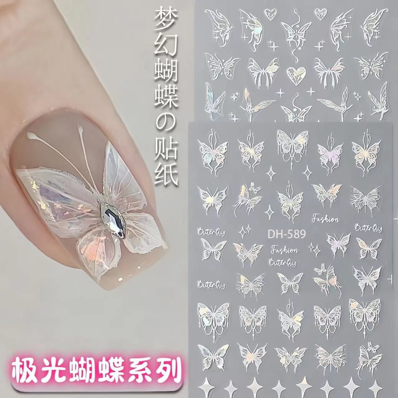 ネットで話題のオーロラ蝶ネイルステッカー、粘着裏地付き、シェル光沢蝶DIYネイルステッカー飾り、DHタイプ