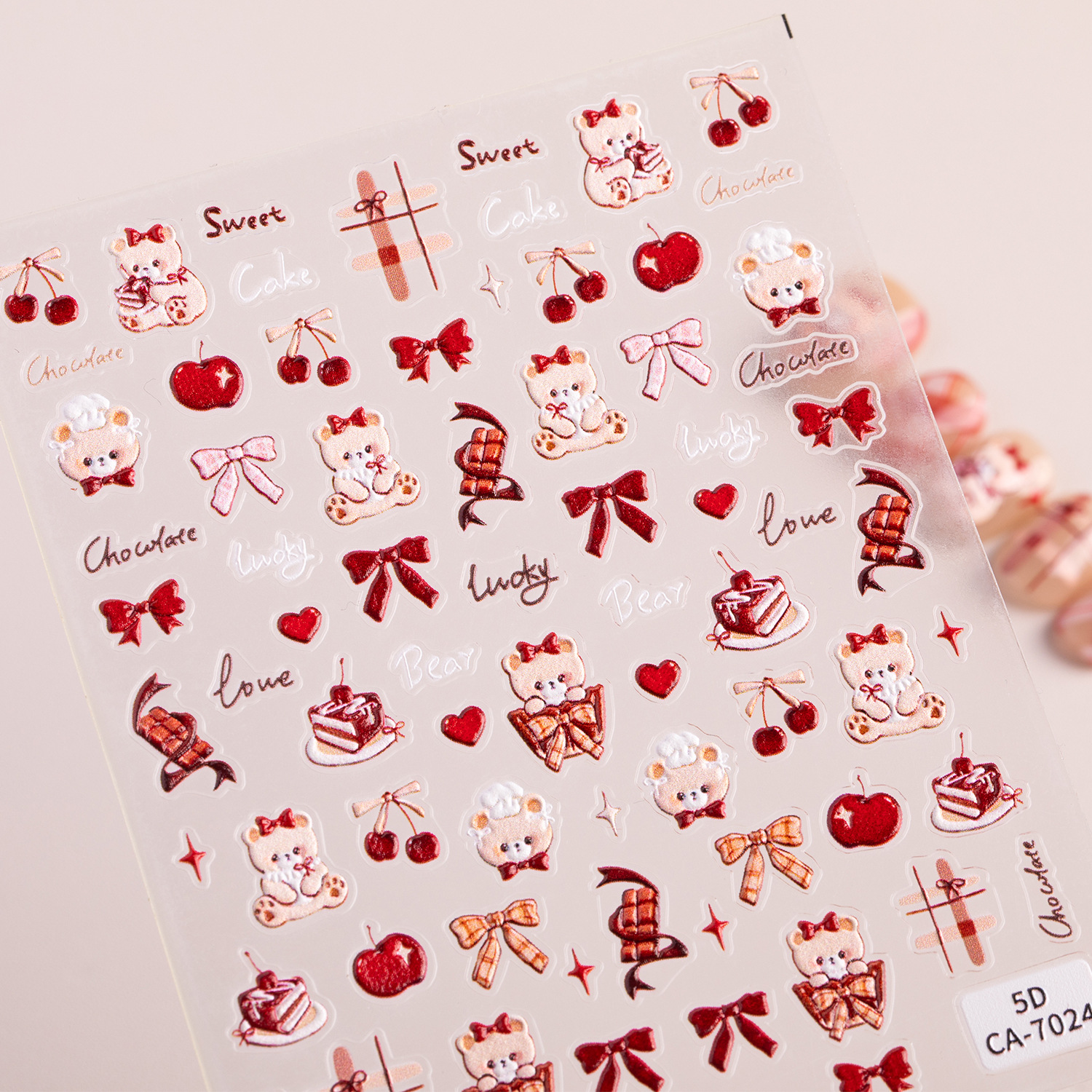 キュートで甘いクマのネイルアートステッカー 5D レリーフ立体レトロスタイル小動物ネイルステッカージュエリー CA スタイル