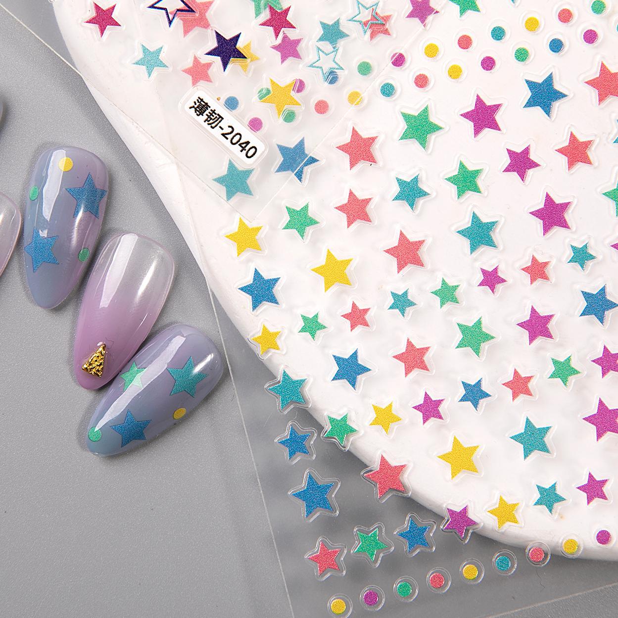 マカロン星型ネイルステッカー シンプルで万能なカラフルな五芒星DIYネイルステッカー装飾 薄くて柔軟なタイプ