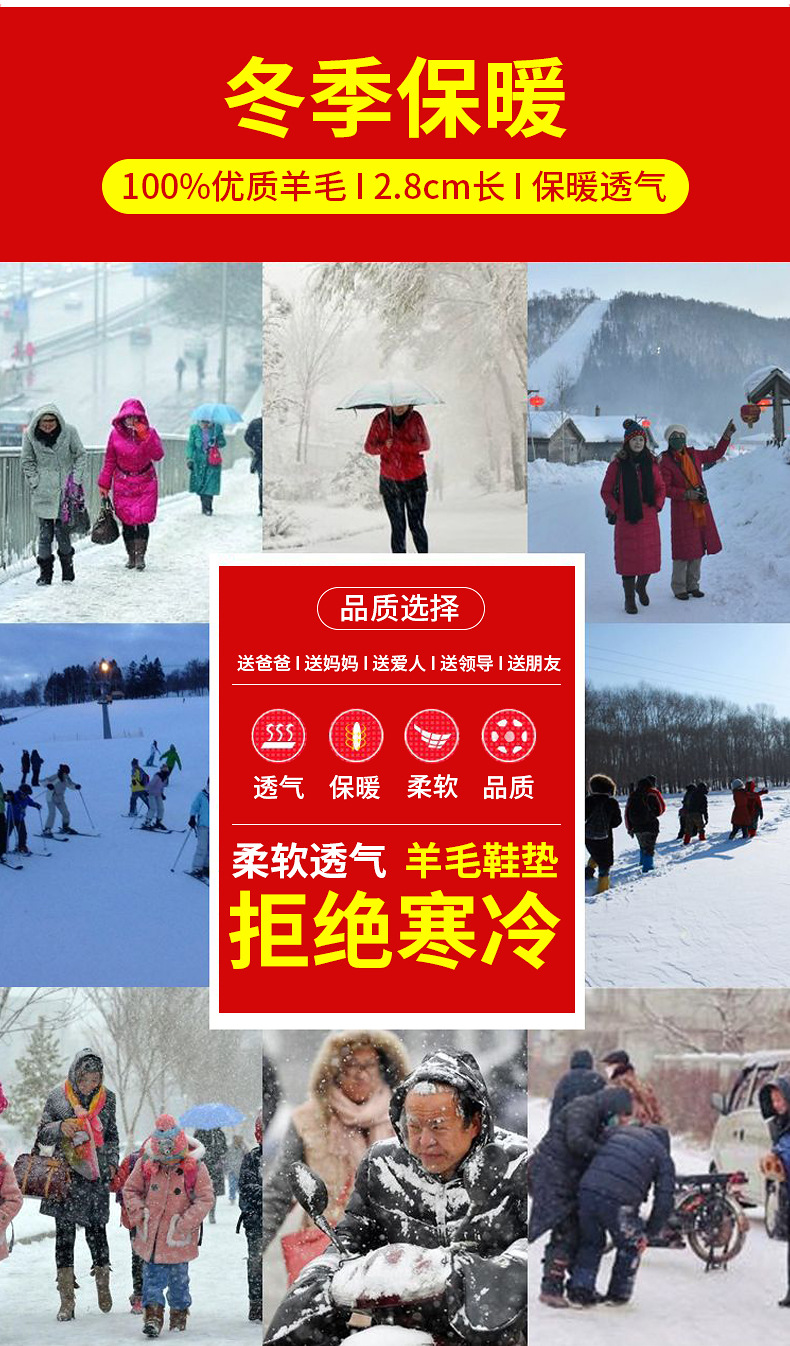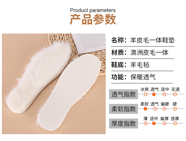 羊毛鞋垫100%羊绒保暖加厚透气吸汗乳胶舒适高弹减震马丁靴加绒