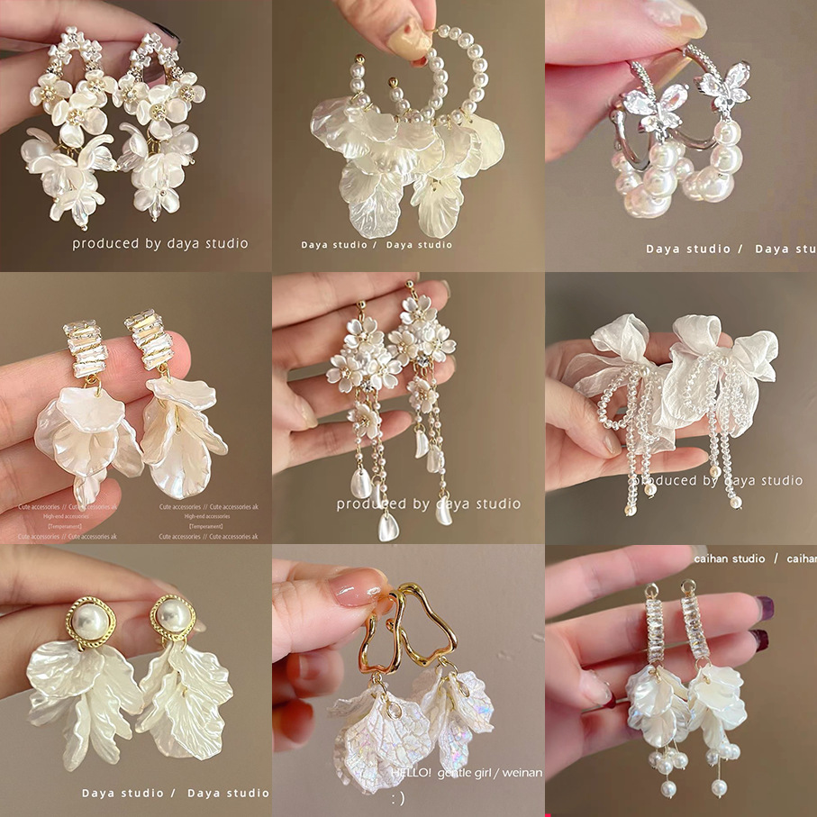 超仙の氷のひびの花のピアスの女子学生の2024年の新型の潮の軽い豪華な大衆の設計の高級感の気質のイヤリング