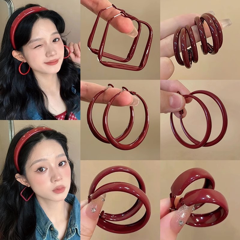 2024年秋冬金安可拉紅イヤリング女性の個性は幾何学的な耳輪を誇示しています。