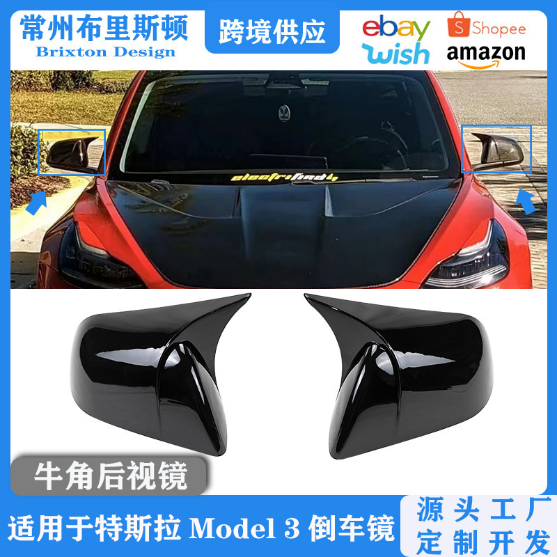 テスラの外観改造model 3/y美版牛角後視鏡カバー改造バックミラー保護カバーに適しています。