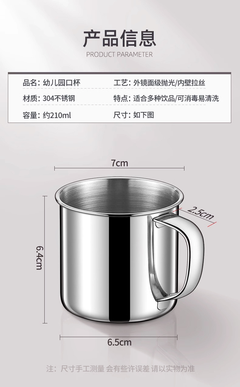 定制口杯304不锈钢茶杯酒杯喝水杯幼儿园专用杯带盖小杯子茶缸