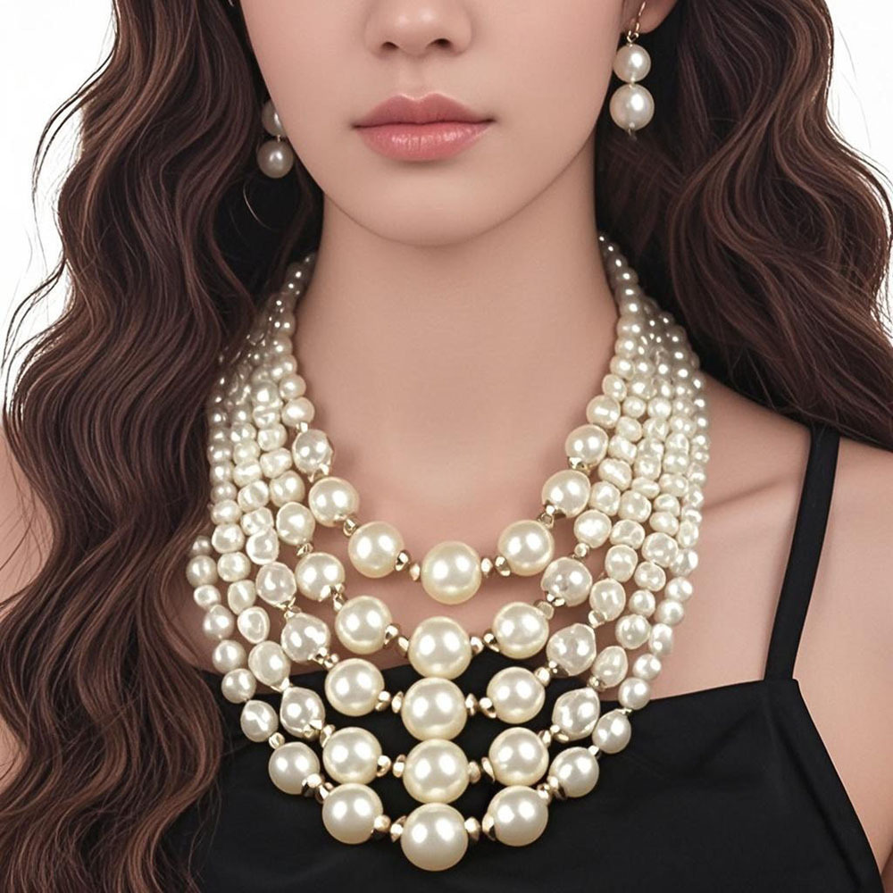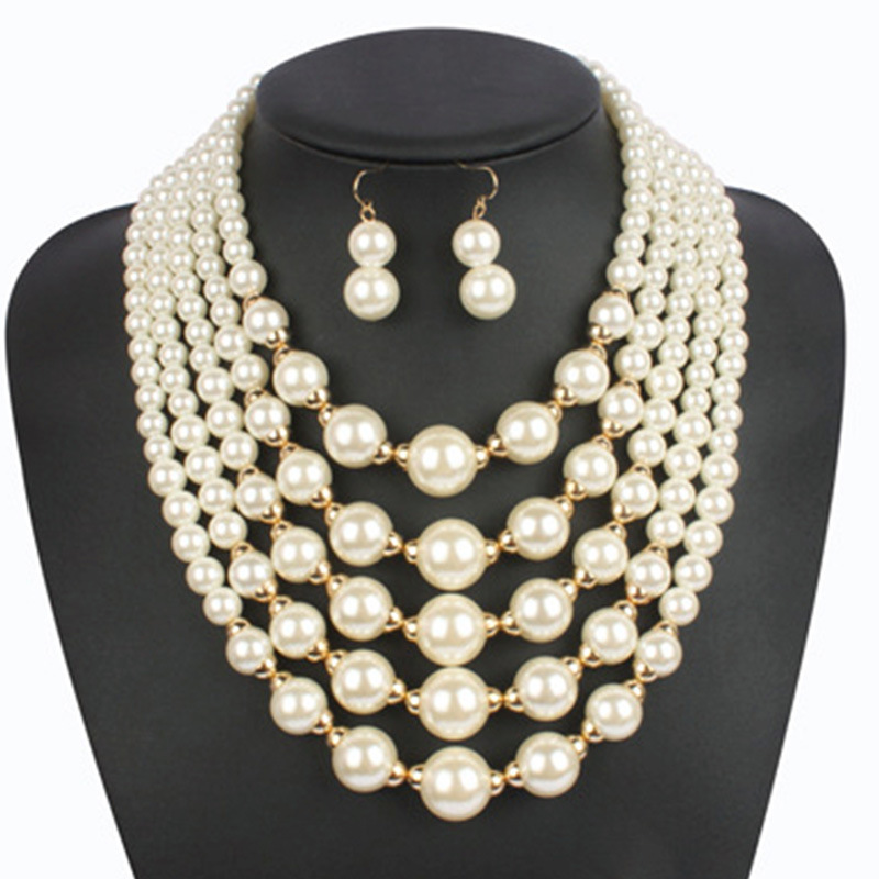 国境を越えた欧米ファッションの人気多層真珠気質女性ネックレスイヤリング女性アクセサリーセット