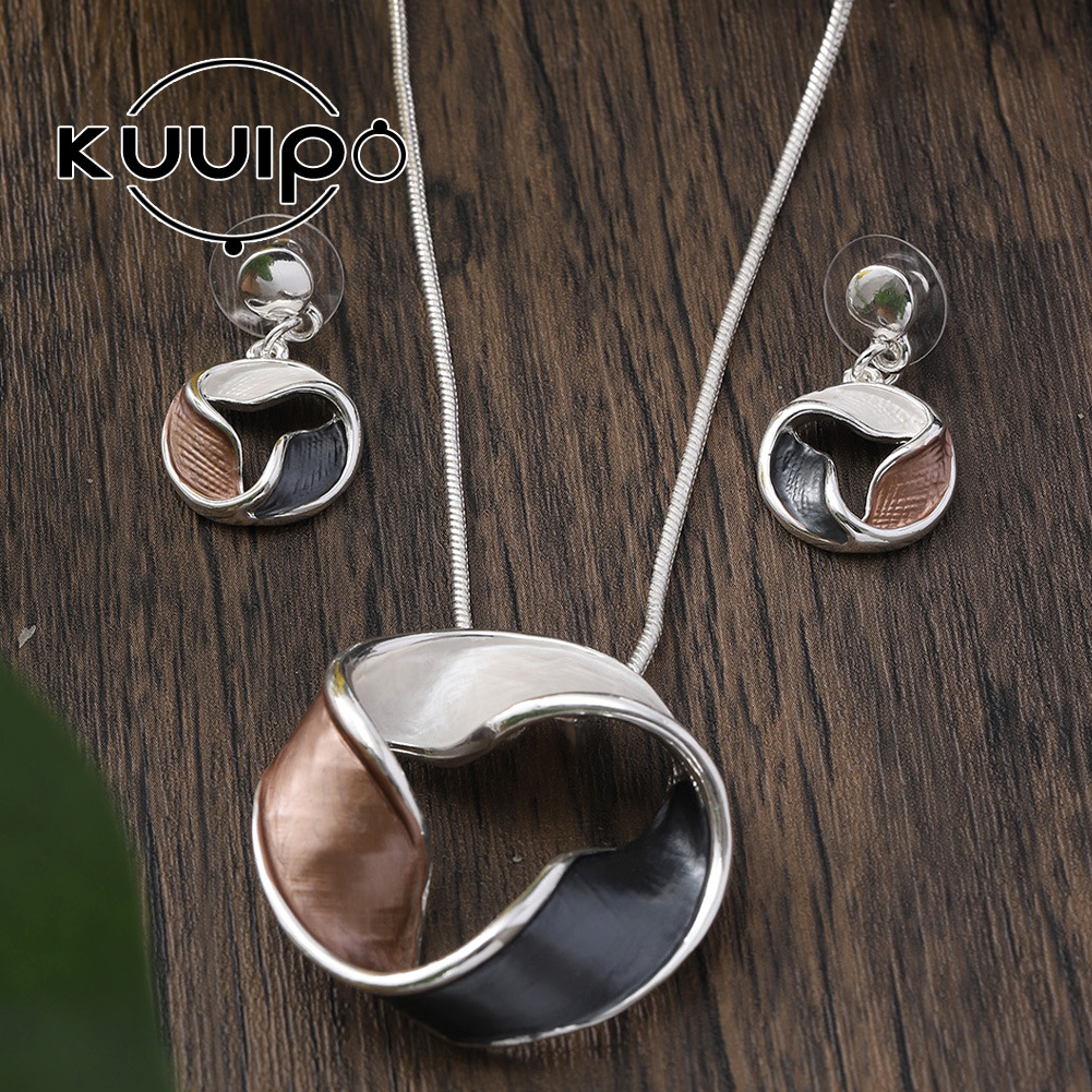 欧米のファッションジュエリーセット亜鉛合金幾何学円形透かし彫りスパイラルデザインネックレスイヤリング女性セット