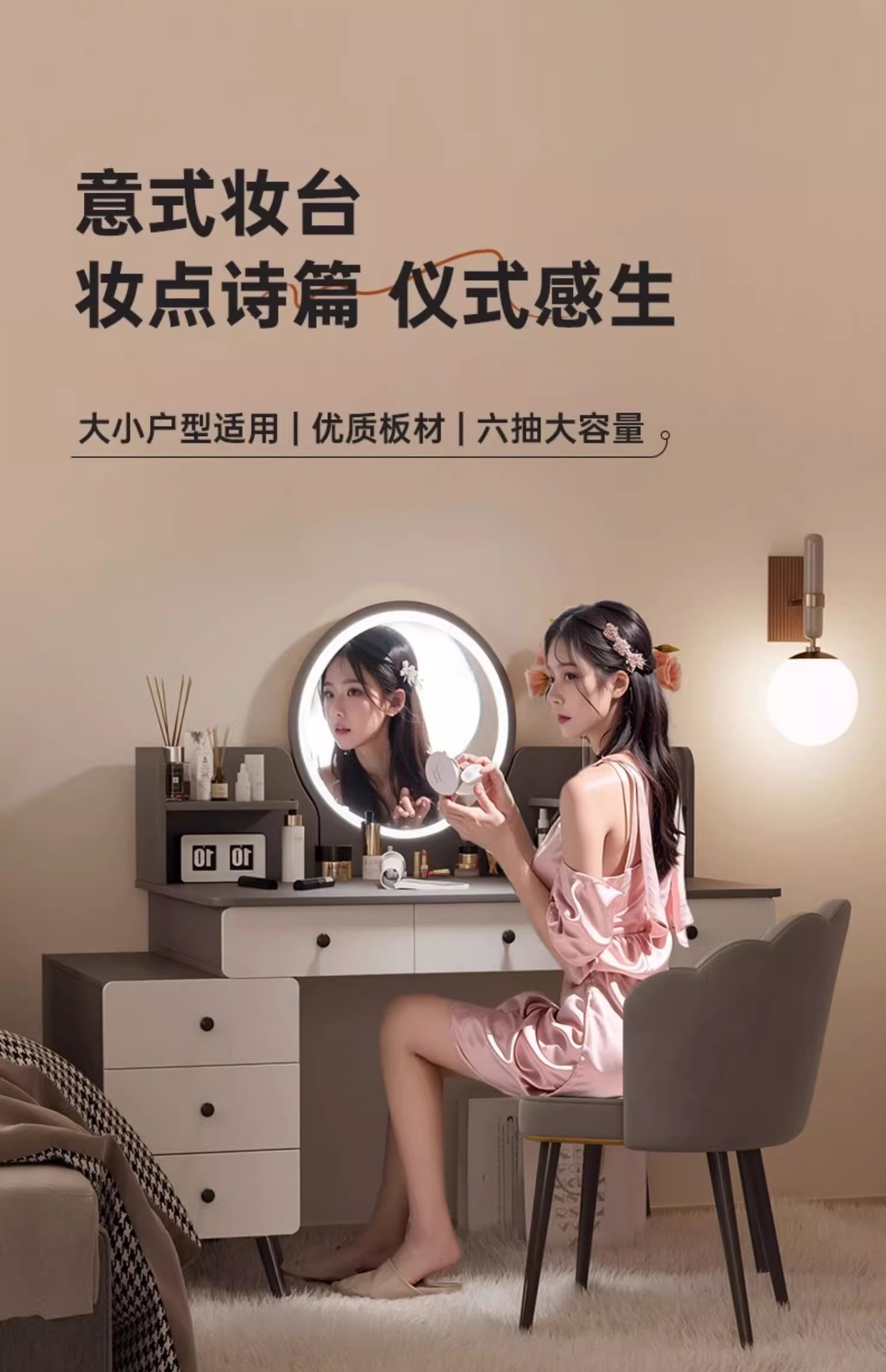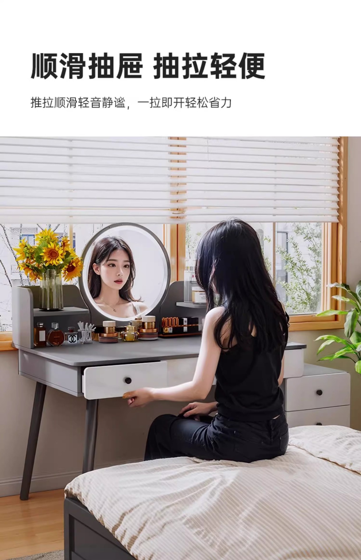 梳妆台卧室简约现代化妆桌柜2024新款轻奢高级感主卧收纳斗柜一体