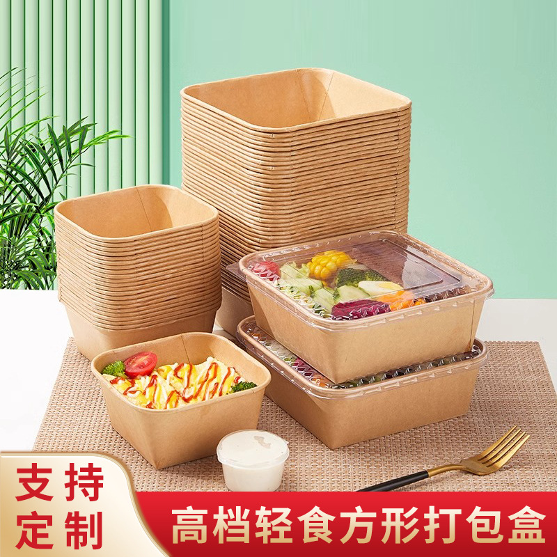 四角いハロゲン味箱果物正方形紙箱ピクニック使い捨て軽食サラダ包装箱クラフト紙蓋付き