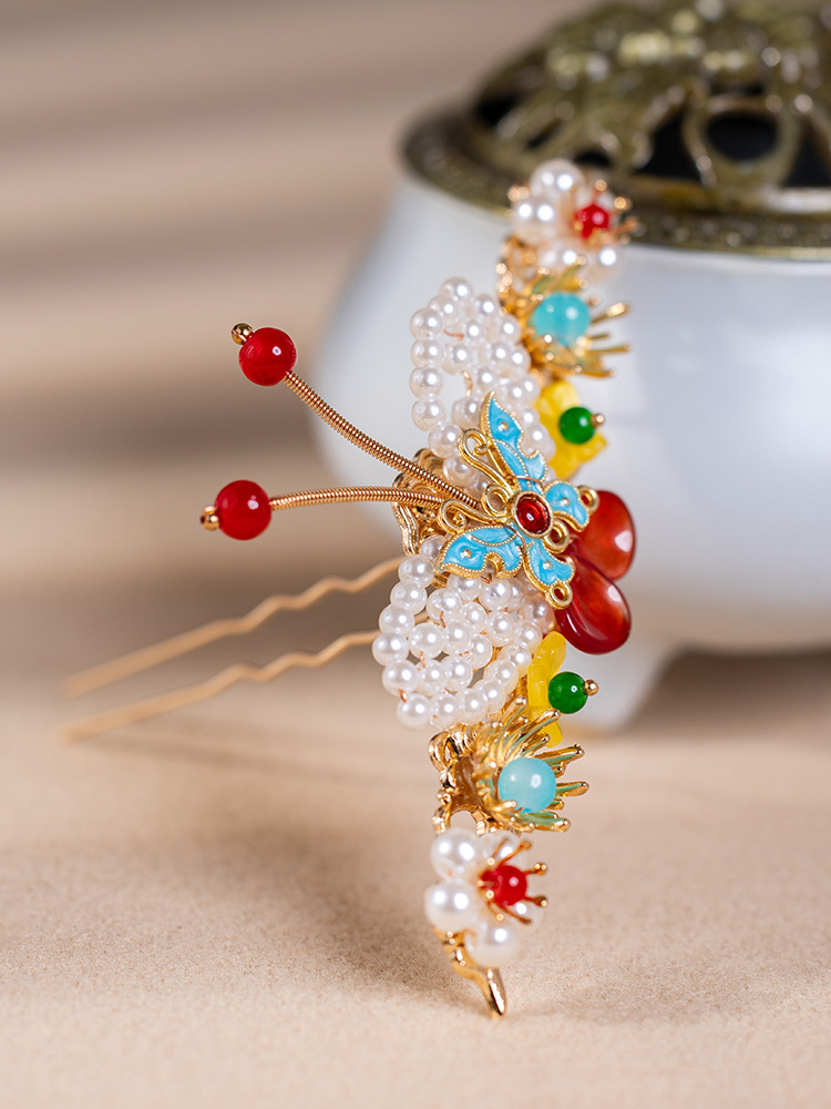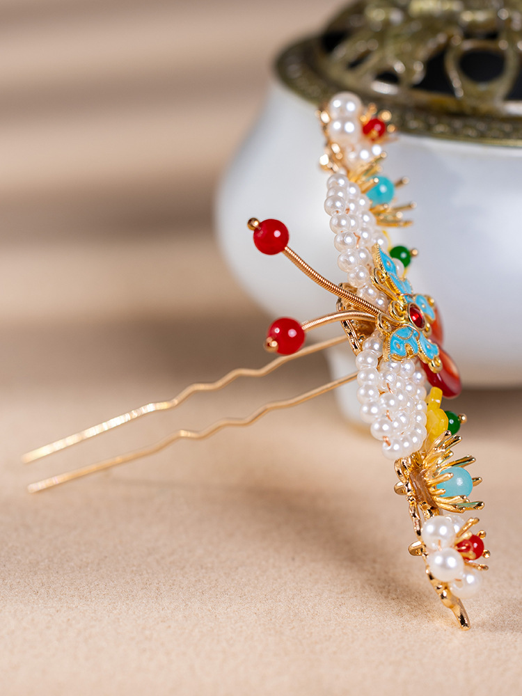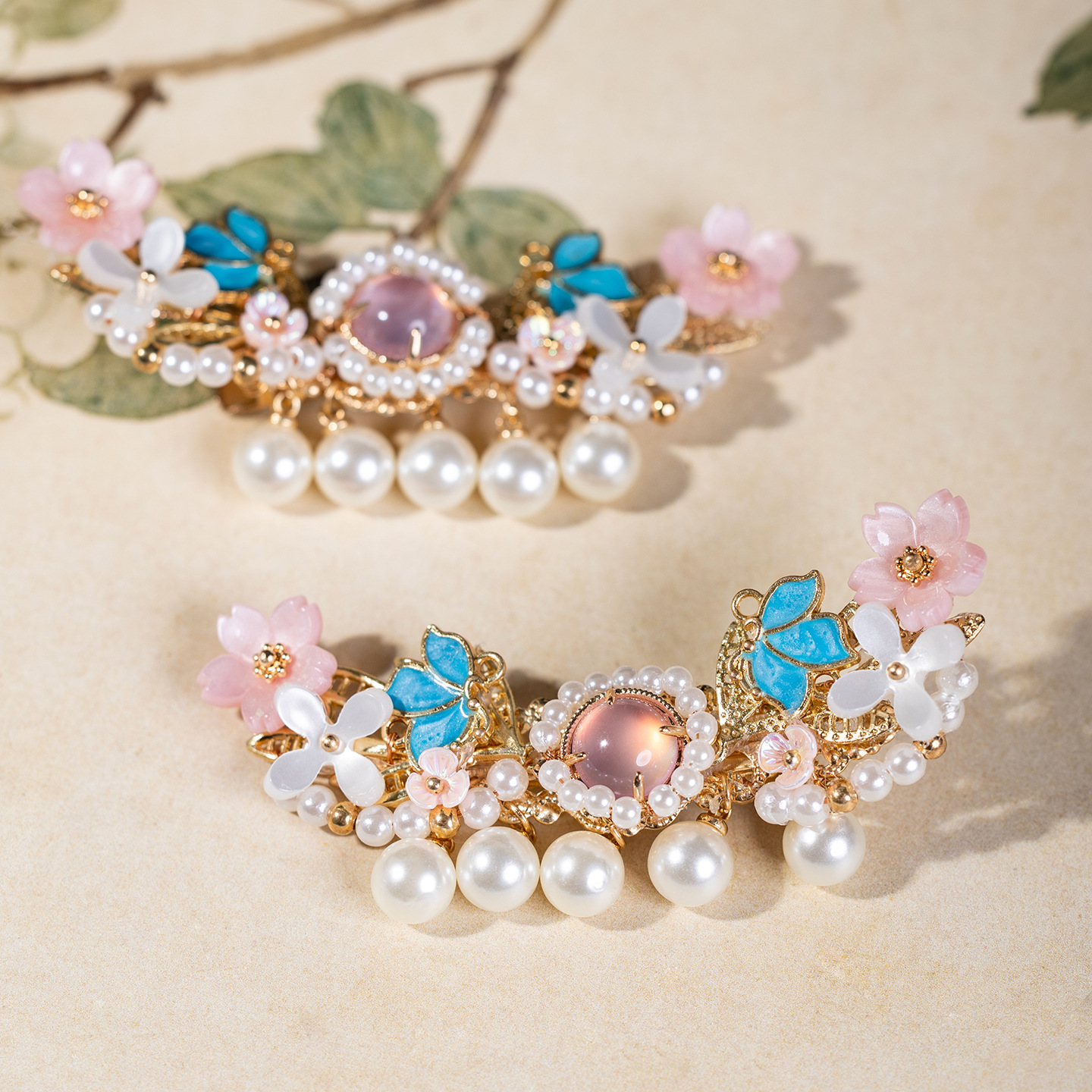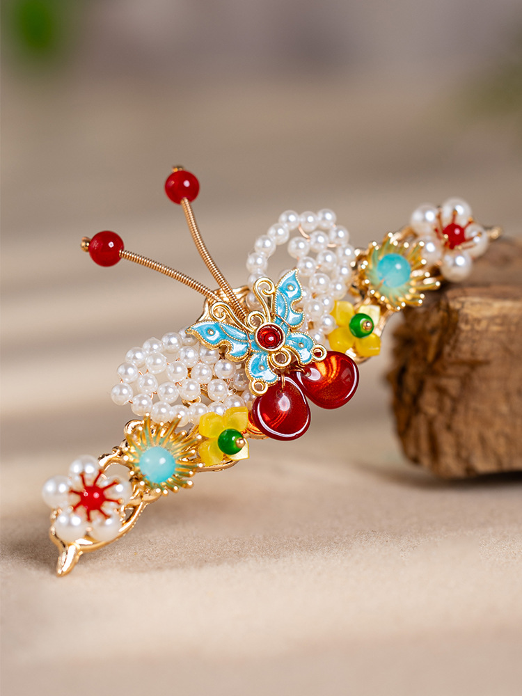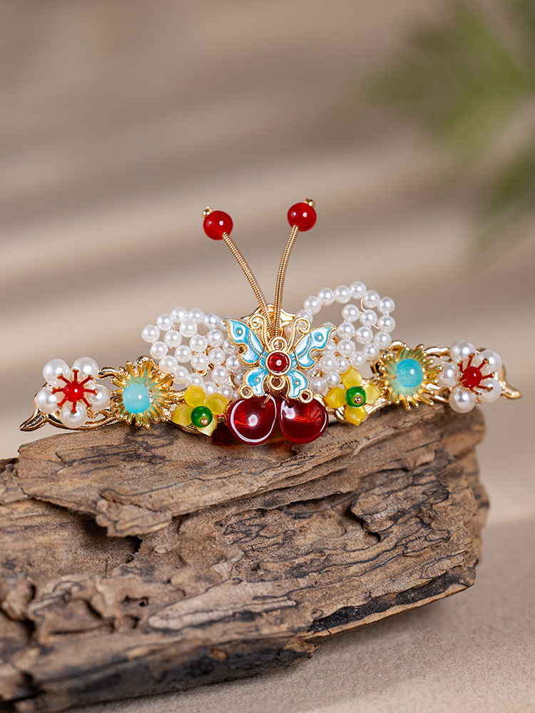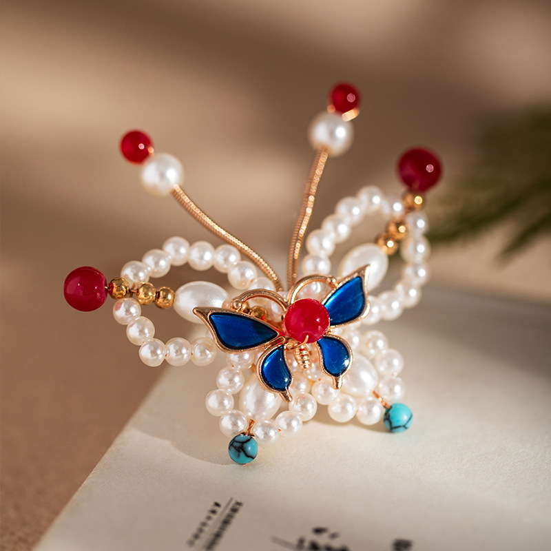 集珠蝶ヘアピン古風新中国風髪飾り国風漢服古着手作りサイドクリップ復古少女頭飾り