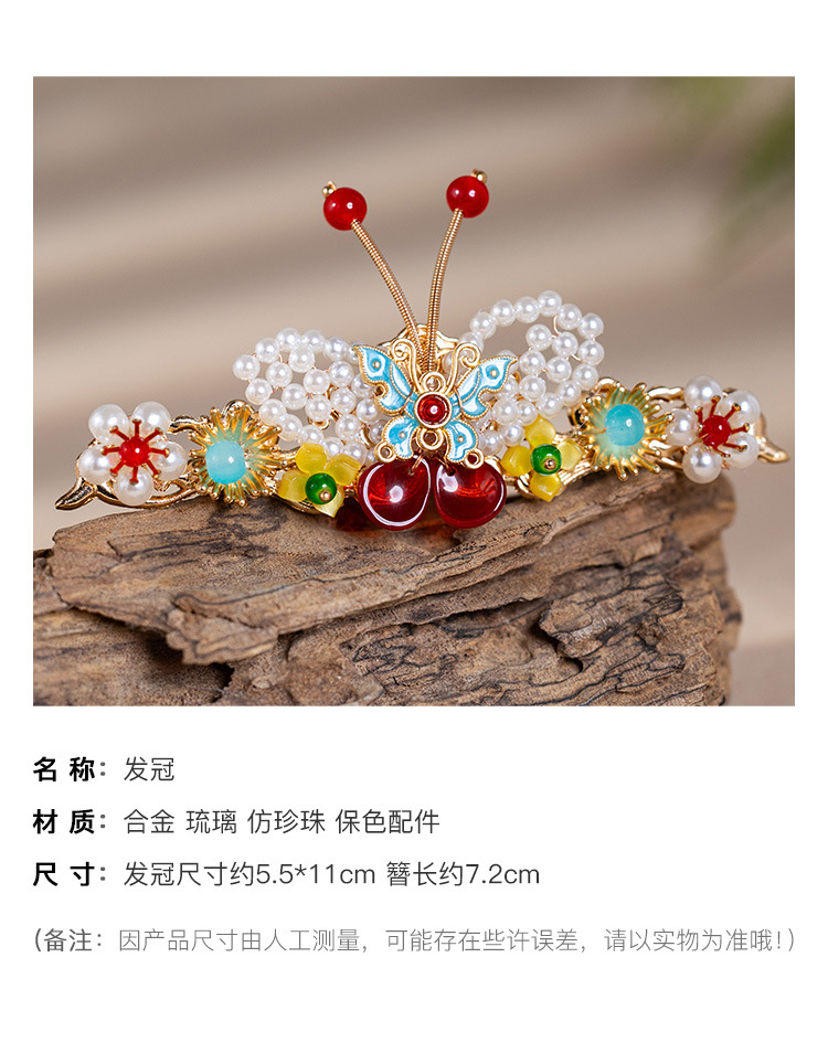 集珠蝶小髪冠頂かんざし古代頭飾り新中国式漢服髪飾り古風髪かんざし国風復古アクセサリー