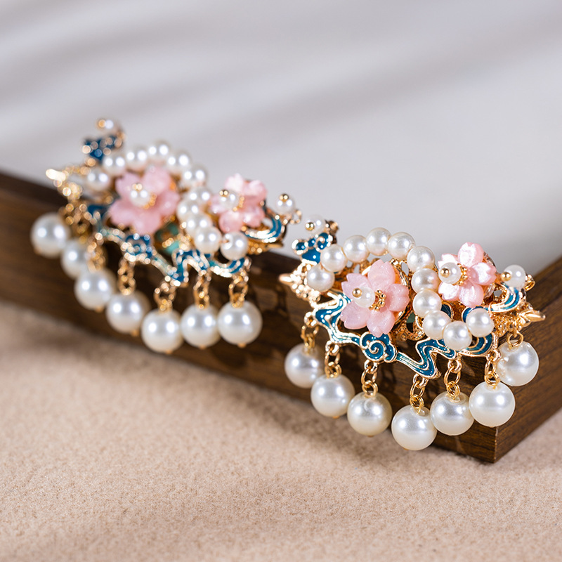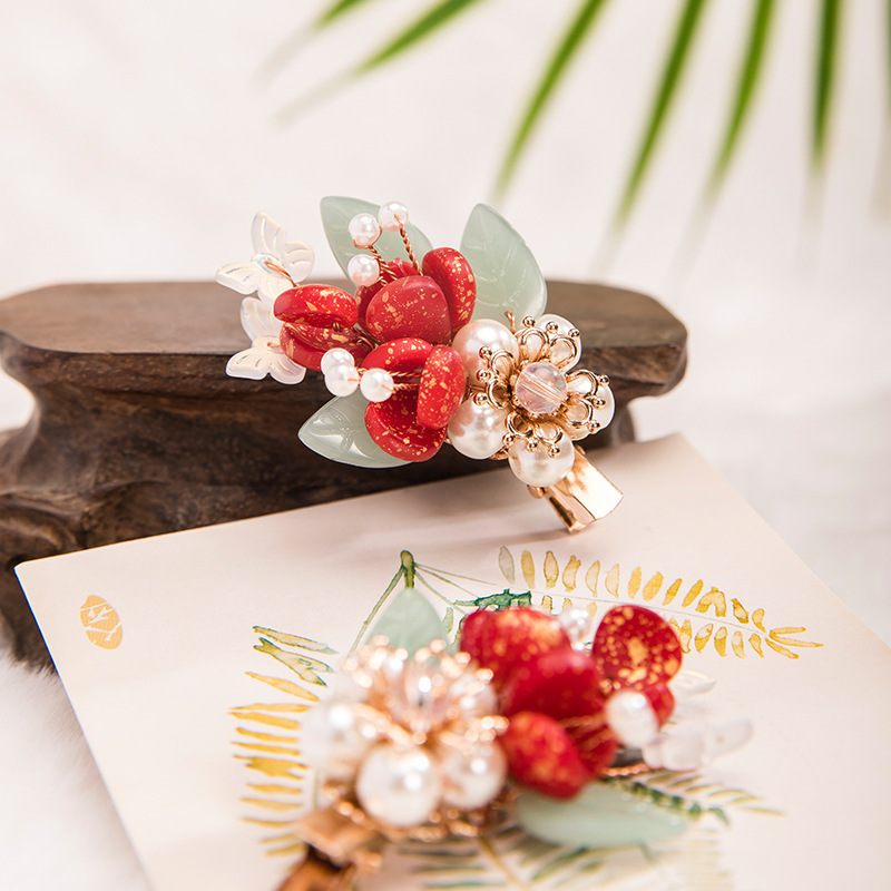 古代スタイルのヘアピン赤い妖精の花ペアクリップサイドクリップ女の子レトロ頭飾り中国風漢服ヘアアクセサリー新中国風