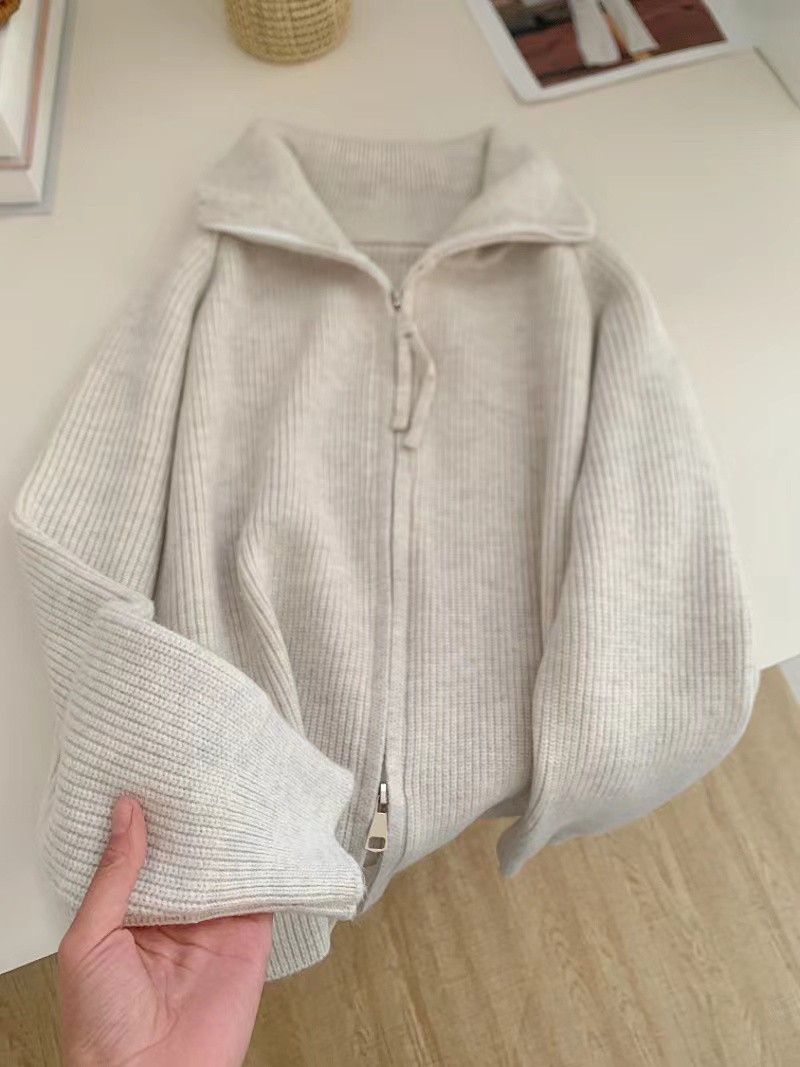 ダブルジッパー厚手カーディガンセーター レディース 2025年春 シンプルでゆったりとしたスタイル 柔らかくて暖かいニットジャケット