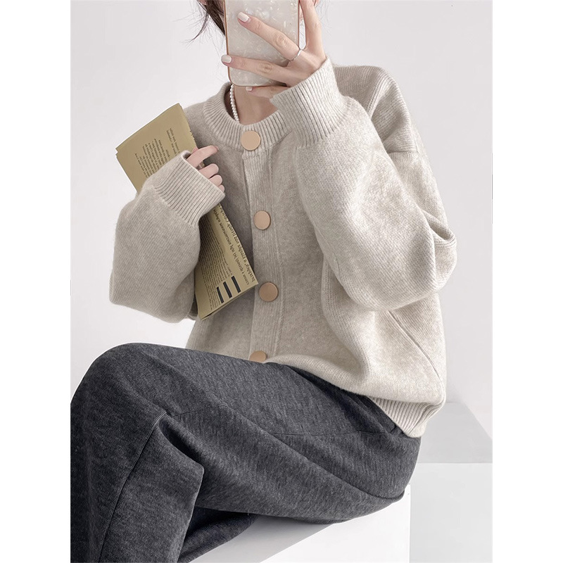 柔らかくワックスのようなシングルブレストニットカーディガン女性のための 2025 春のファッションルーズ韓国セーターシンプルなレトロなトップジャケット