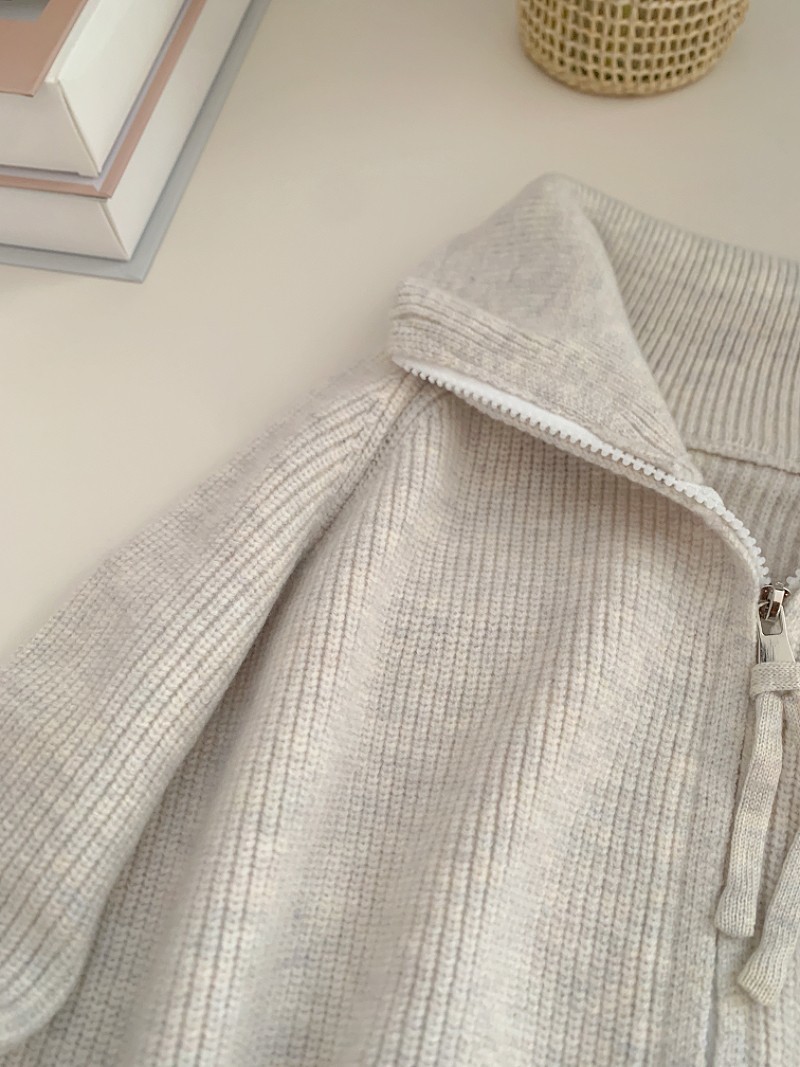 日本系のシンプルな小さなスタンドカラーのニットシャツ