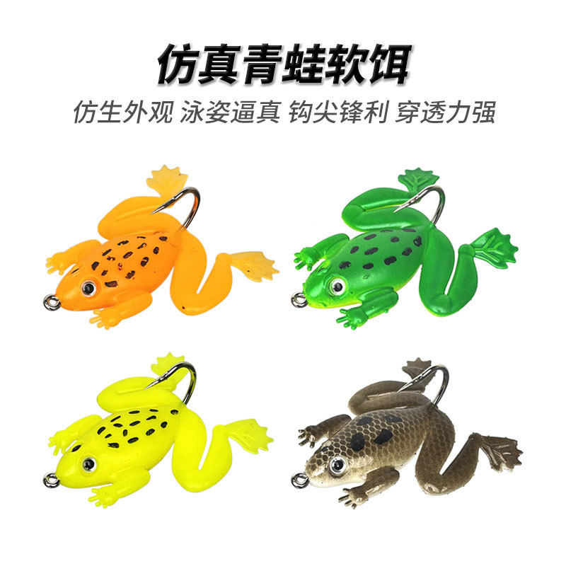 卸売り越境路亜蛙型偽餌3g 5g軟餌はカエルの海馬フックをバイオニクスします。