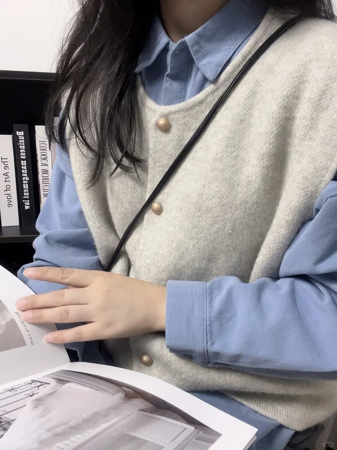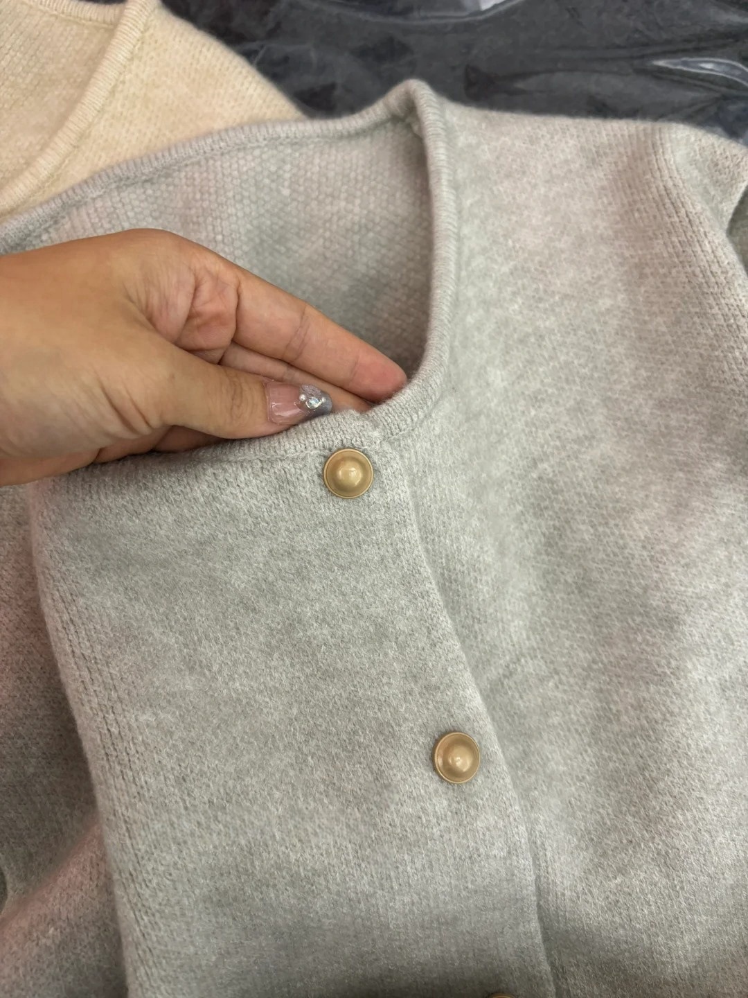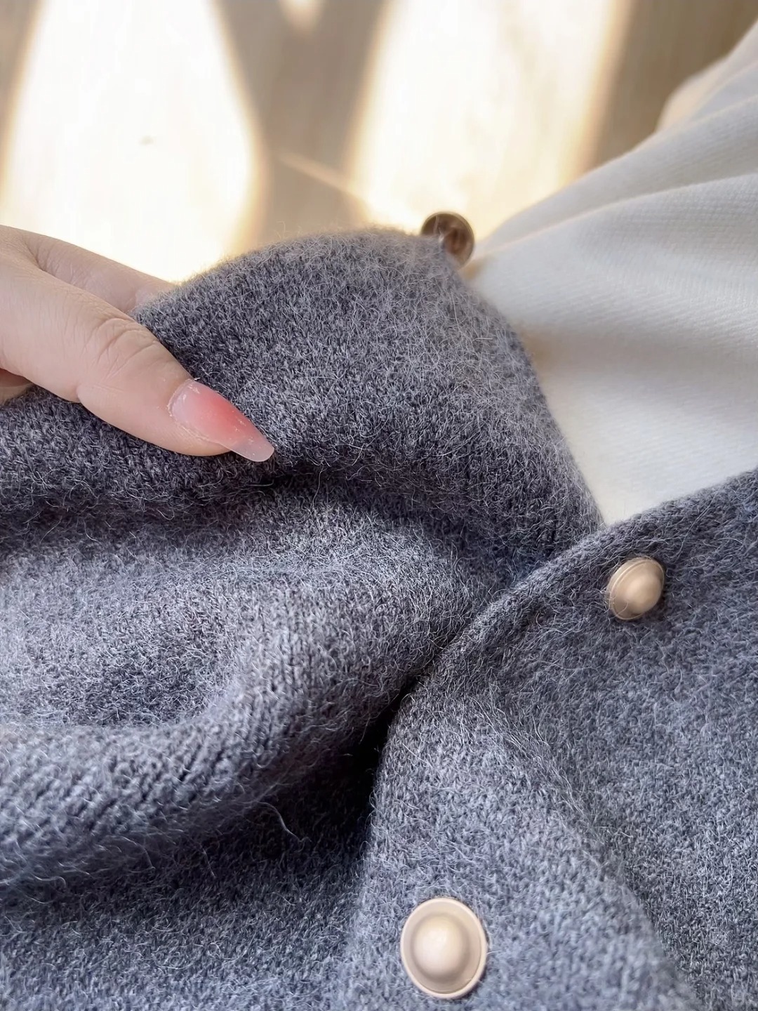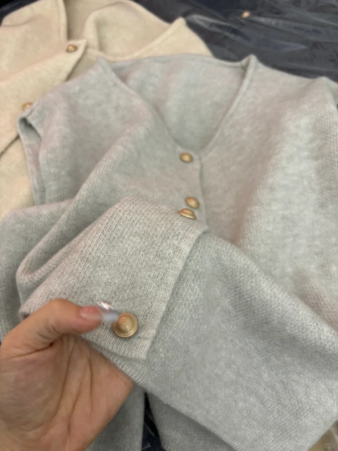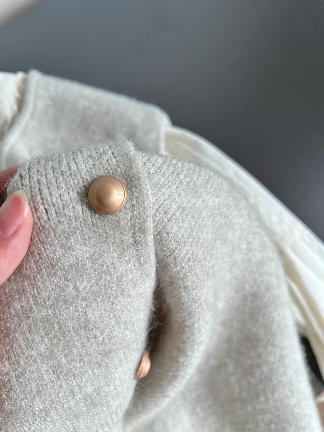シンプルで怠惰な風の小金はカーディガンのセーターを編んでいます。