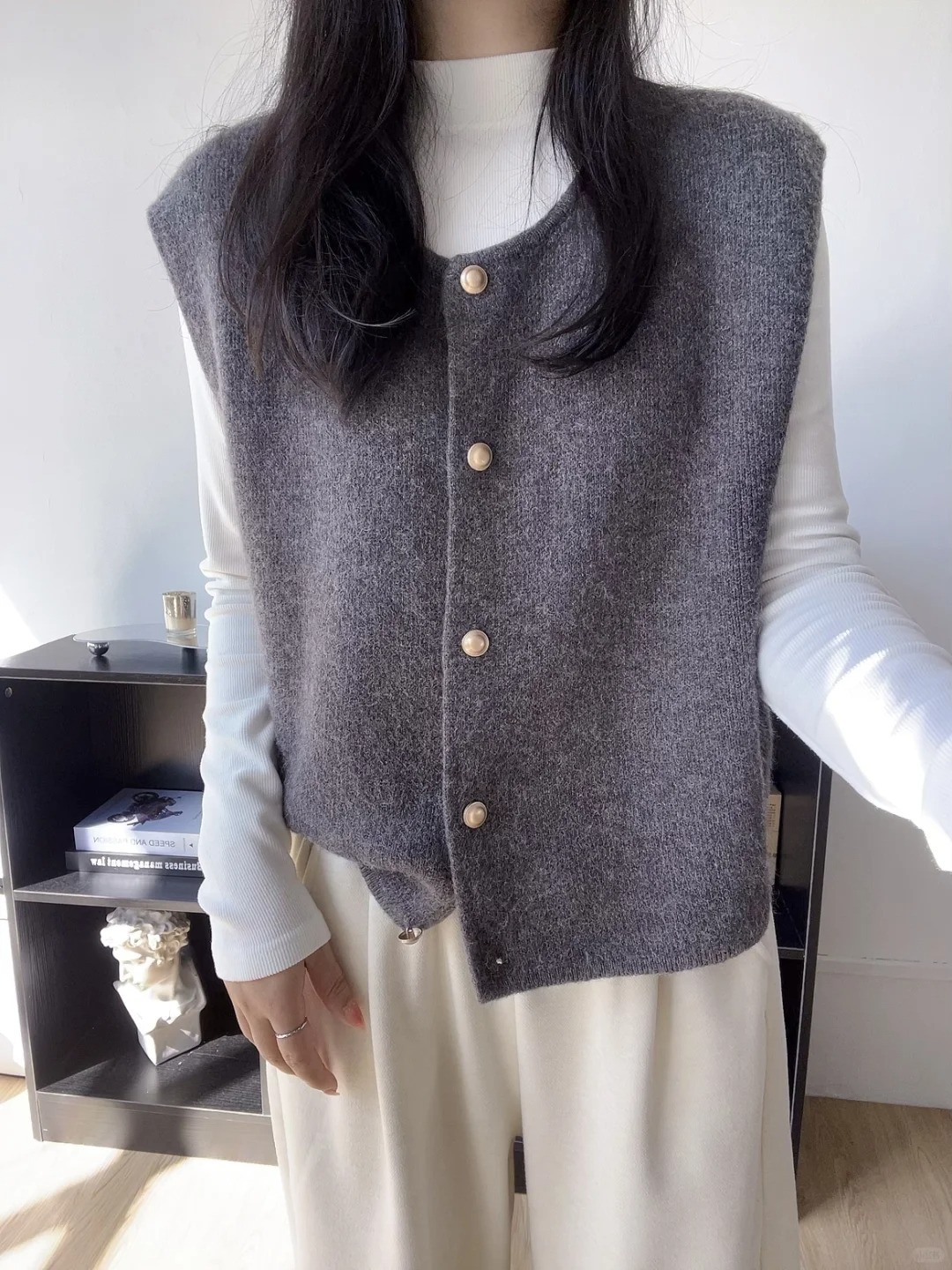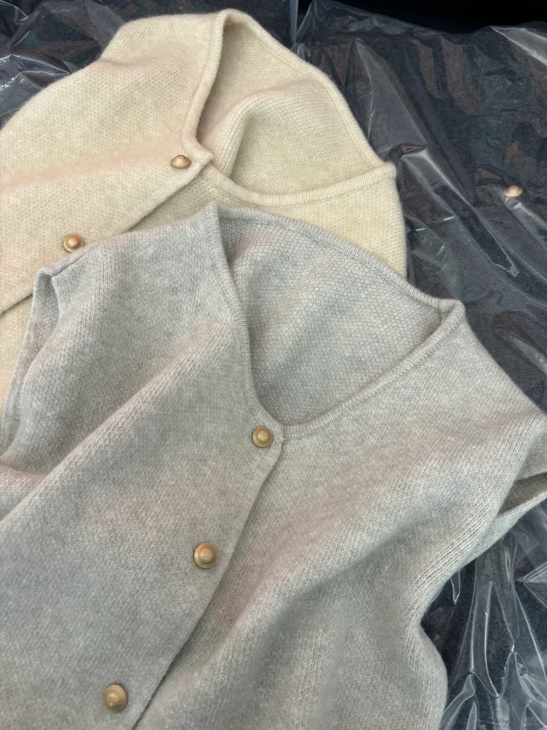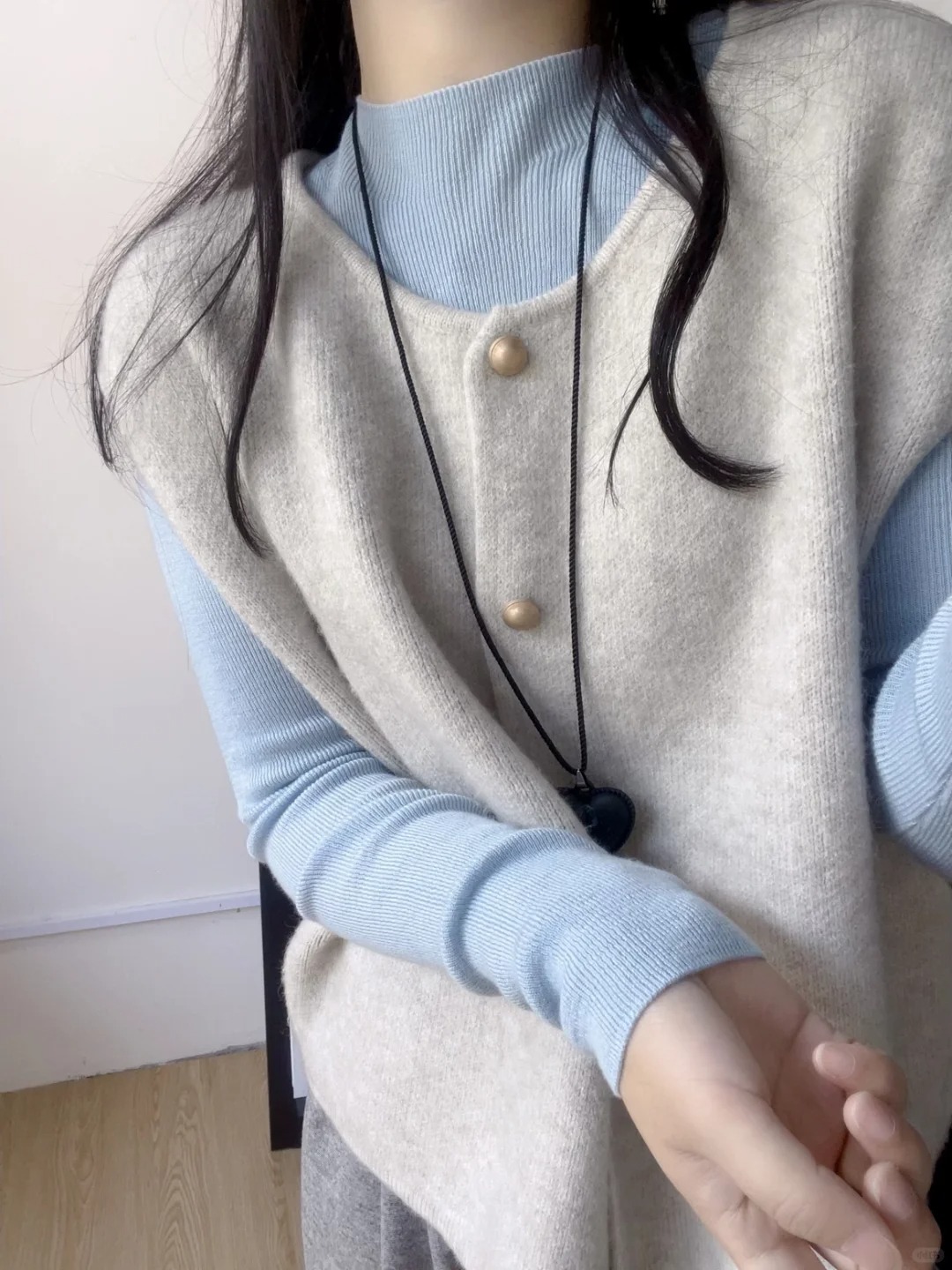 韓国風グレー重ね着ニットベスト レディース 2025春 ソフトなセーター ノースリーブカーディガン ゆったり感 万能ベスト