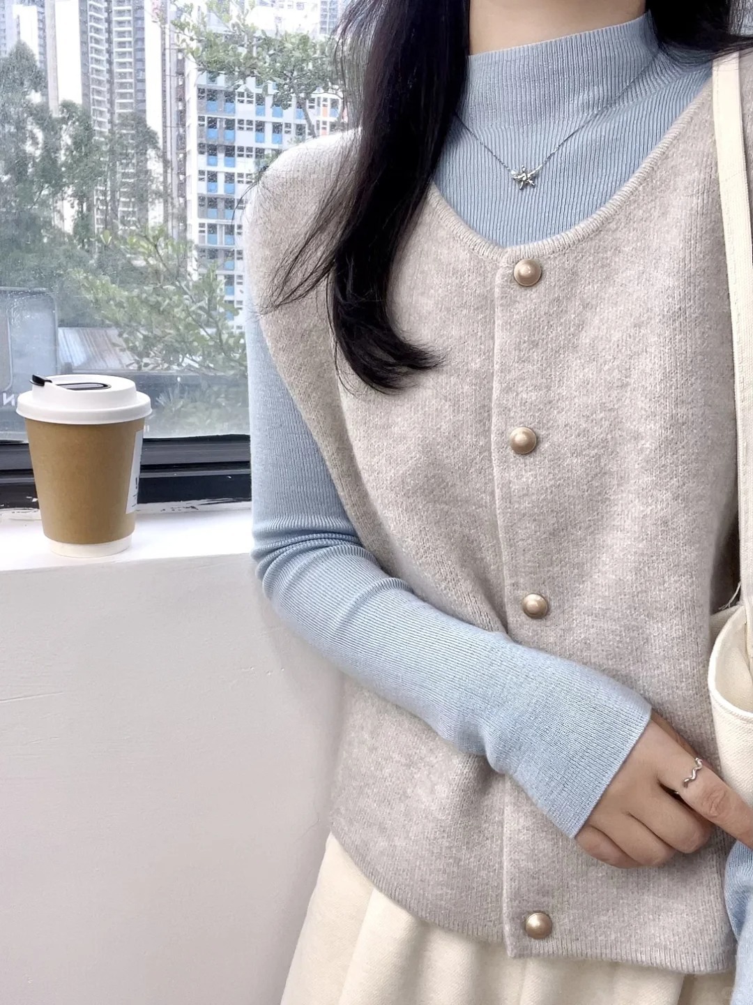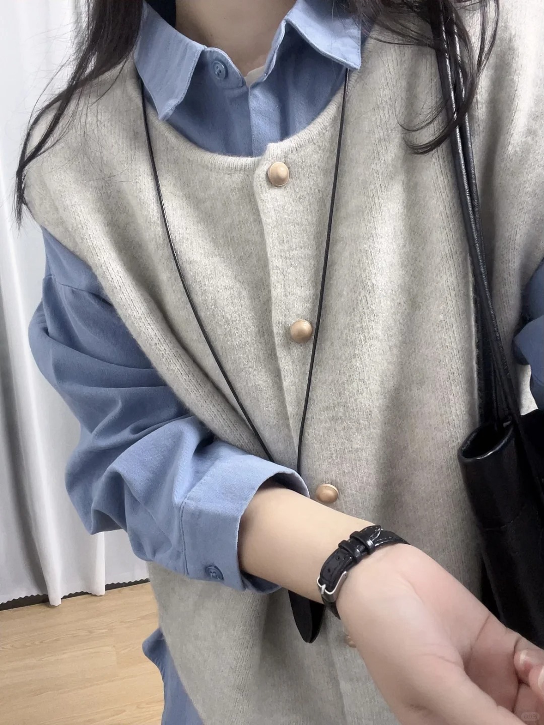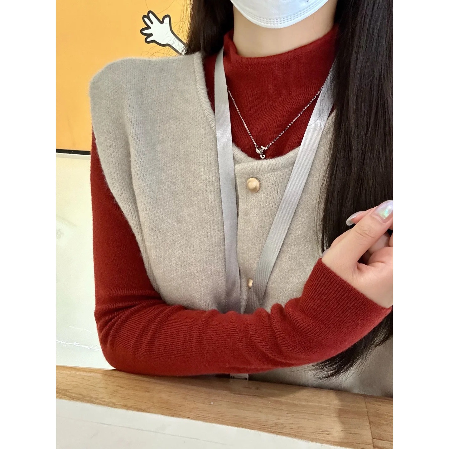 韓国風グレー重ね着ニットベスト レディース 2025春 ソフトなセーター ノースリーブカーディガン ゆったり感 万能ベスト