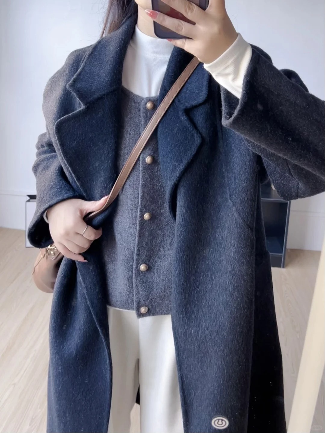 カレー色のレトロな半高襟の中にニットの底のシャツを掛けます。