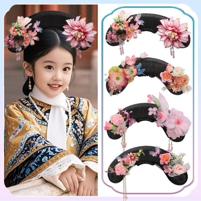 古代衣装ウィッグ清朝宮殿旗頭大人旗頭COSスタイリングヘアバッグおだんごヘアコーム旗頭