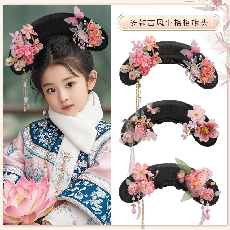 大人の旗頭清朝旗頭アゲハ古代風ウィッグアクセサリーセット宮殿パフォーマンスウィッグアクセサリー古代風旗頭