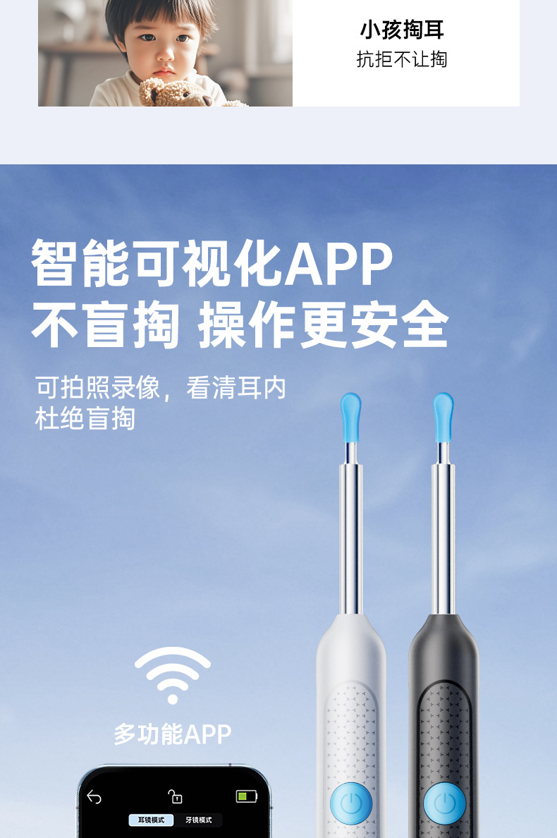 クロスボーダー高精細WIFIスマートクリーン神器無線多機能耳かきスプーン家庭実用可視化耳かきスプーン