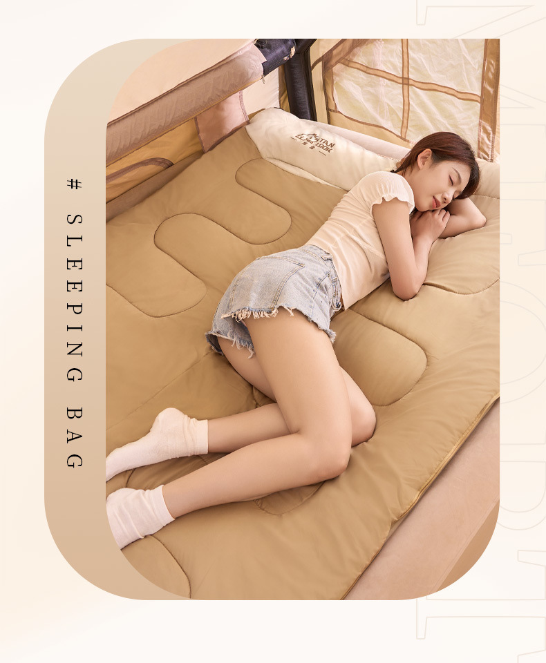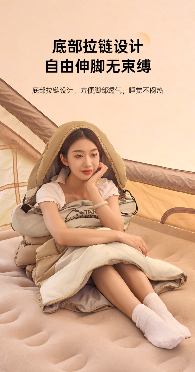 戸外春秋は保温を厚くして室内の昼休みにキャンプをしている二人のカップルが手を伸ばして旅行の汚れた綿の寝袋をつなぎ合わせることができる
