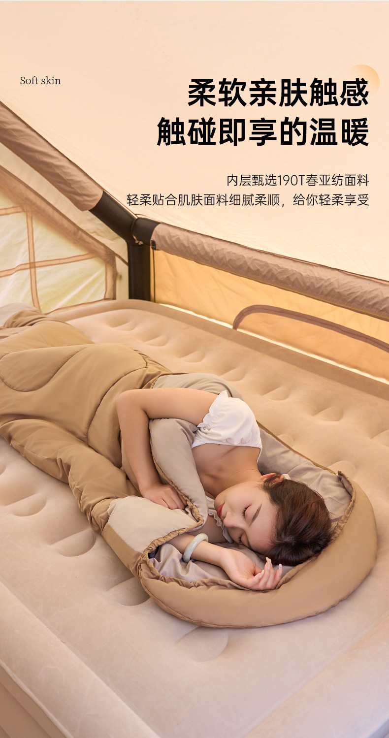 屋外キャンプ釣り寝袋成人寝袋一人四季インフレータブル冬厚手防寒汚れ二人昼休み