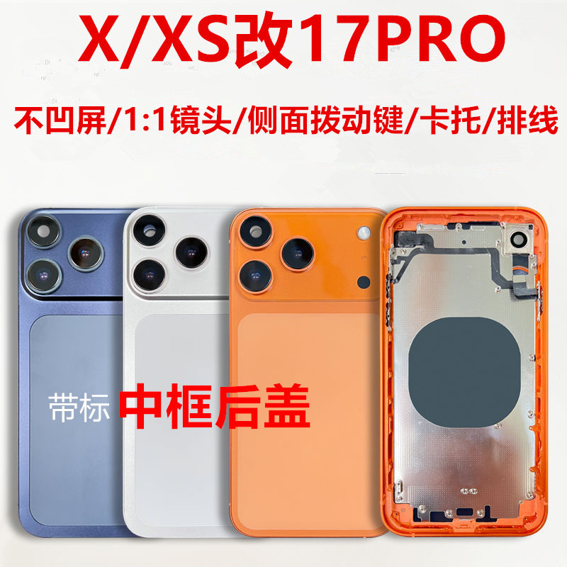 适用苹果X改17pro中框玻璃后盖总成改壳一体XS改17pro拨动按键款