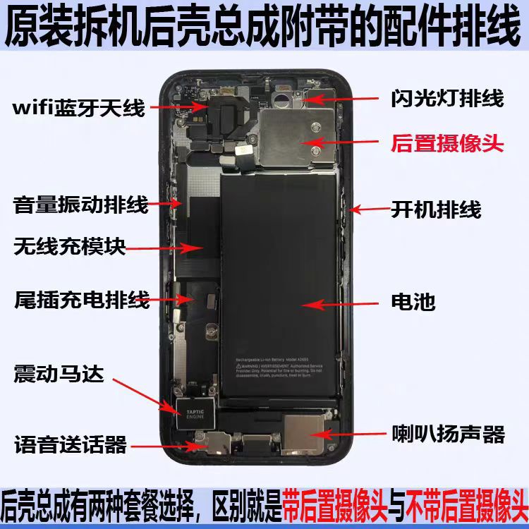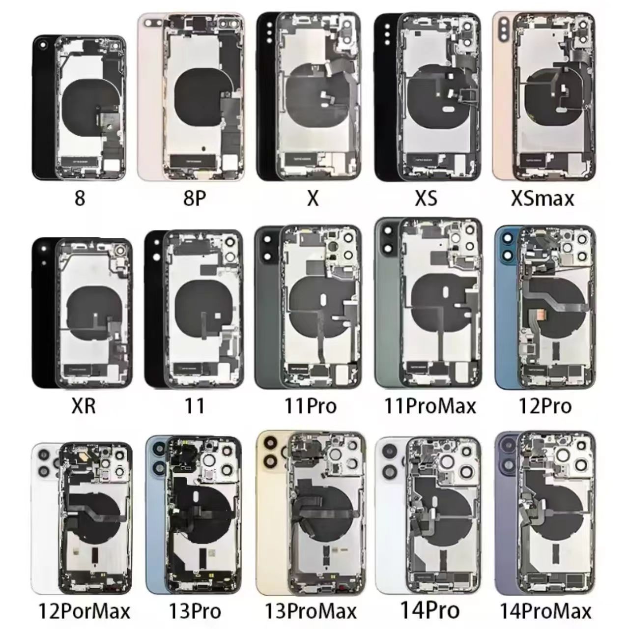 适用于XR/11/12/13/15/14PM苹果中框手机后盖总成带配件后壳玻璃
