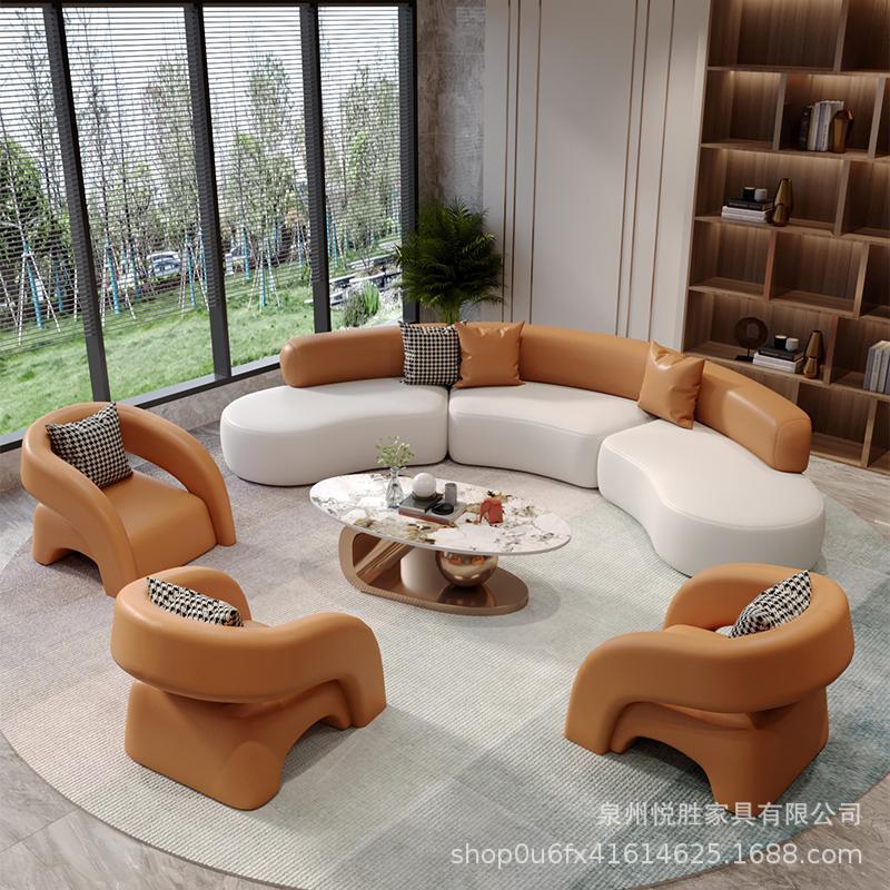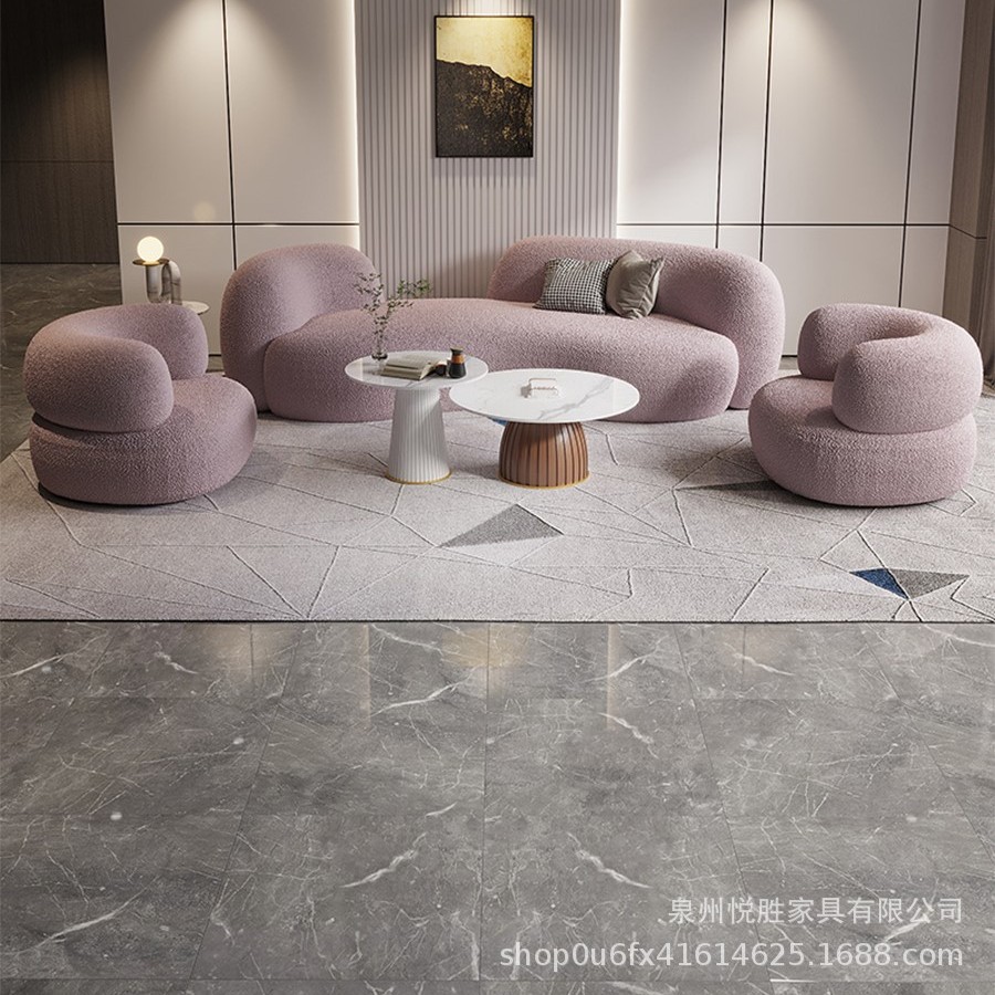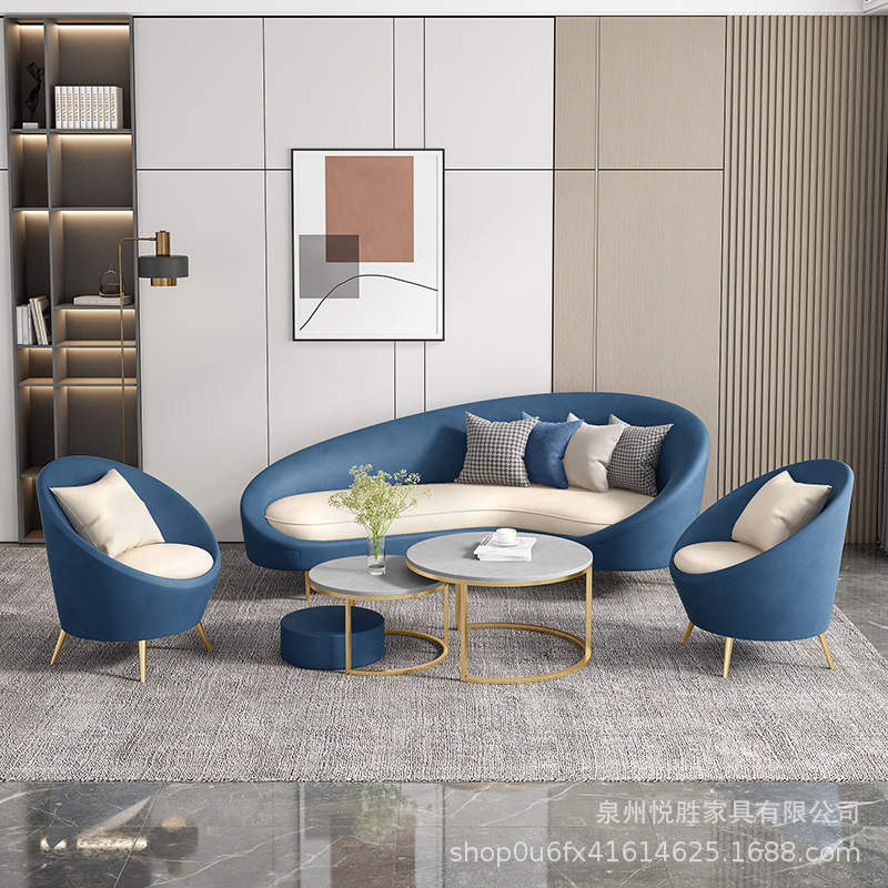 軽豪華風現代シンプル客間美容院服装店ネット赤ソファー羊小毛布芸アーチ形ソファー茶卓