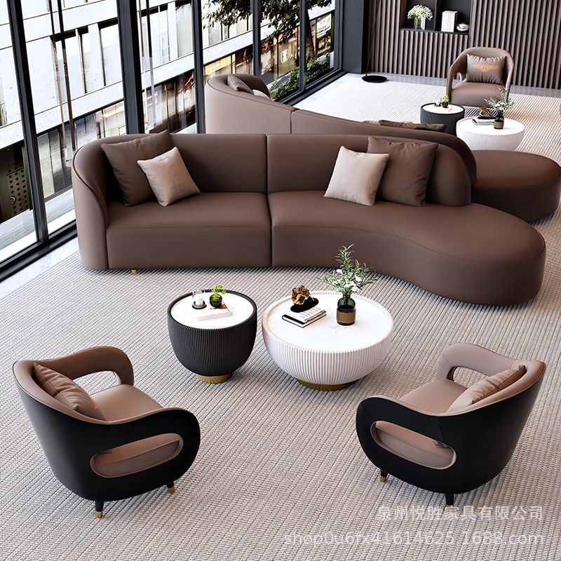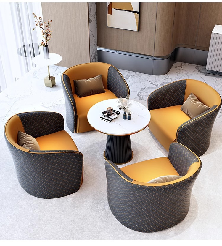ホテルロビーレセプションソファコーヒーテーブルライトラグジュアリーモダンレジャー営業所オフィス受付商談テーブルと椅子の組み合わせ
