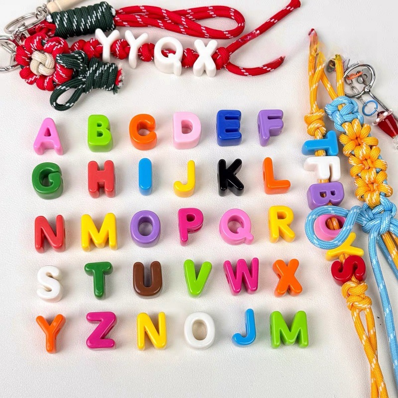 カラーアクリル大孔字母珠ビーズdiy手作り携帯電話チェーン包掛ストラップ材料アクセサリー部品