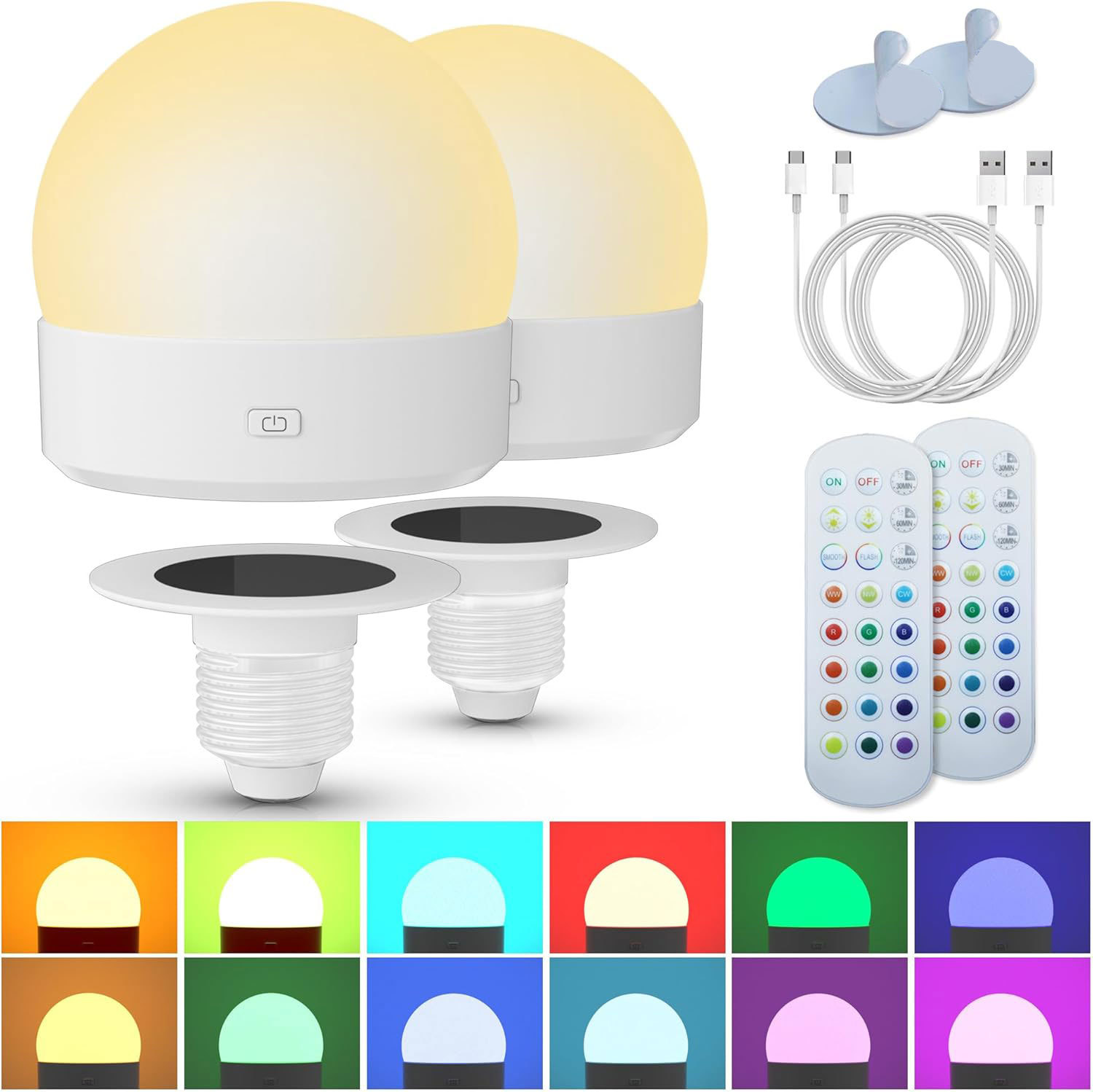 LED磁気吸着式充電式カラフルリモコン付きタイマー調光ベッドサイドUSBテーブルランプ壁掛けランプ雰囲気照明E26/E14電球