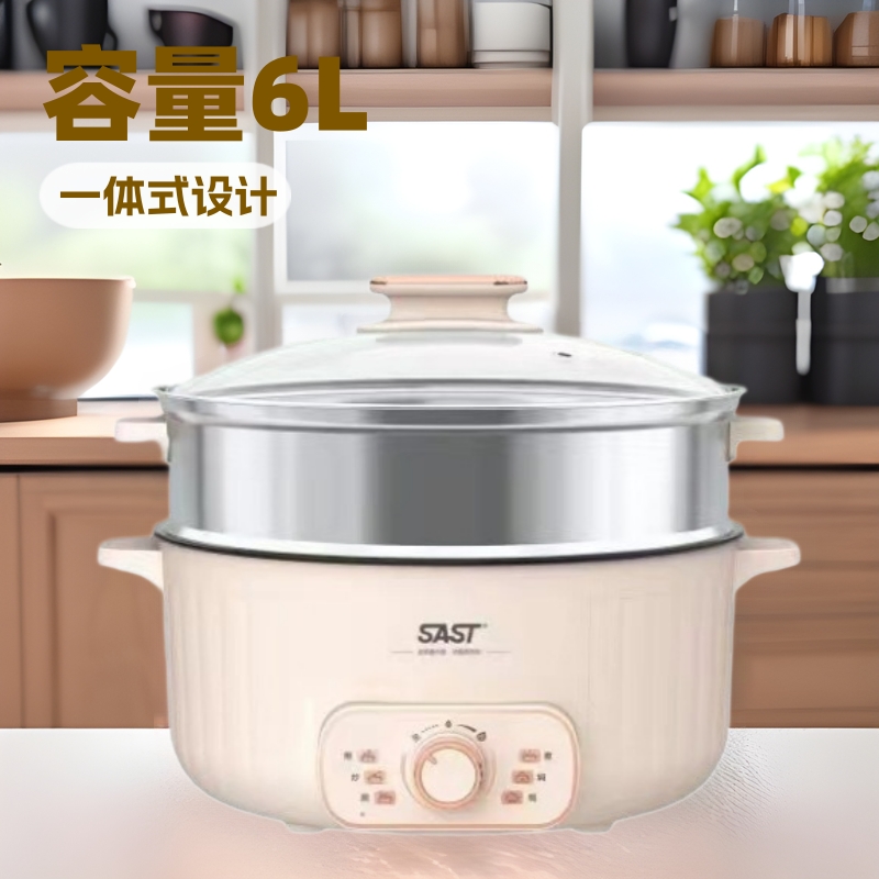 先科家庭用電気鍋 多機能電気調理鍋 一体型6L容量 電気鍋 焼き物 揚げ物 保温機能付き