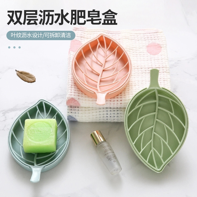 木の葉の二重の水切りの創意家庭用石鹸の箱は穴を開けないで浴室のトイレのベランダの石鹸は石鹸の棚を洗います。