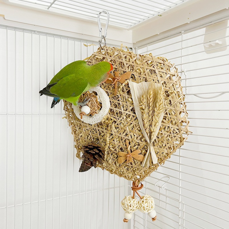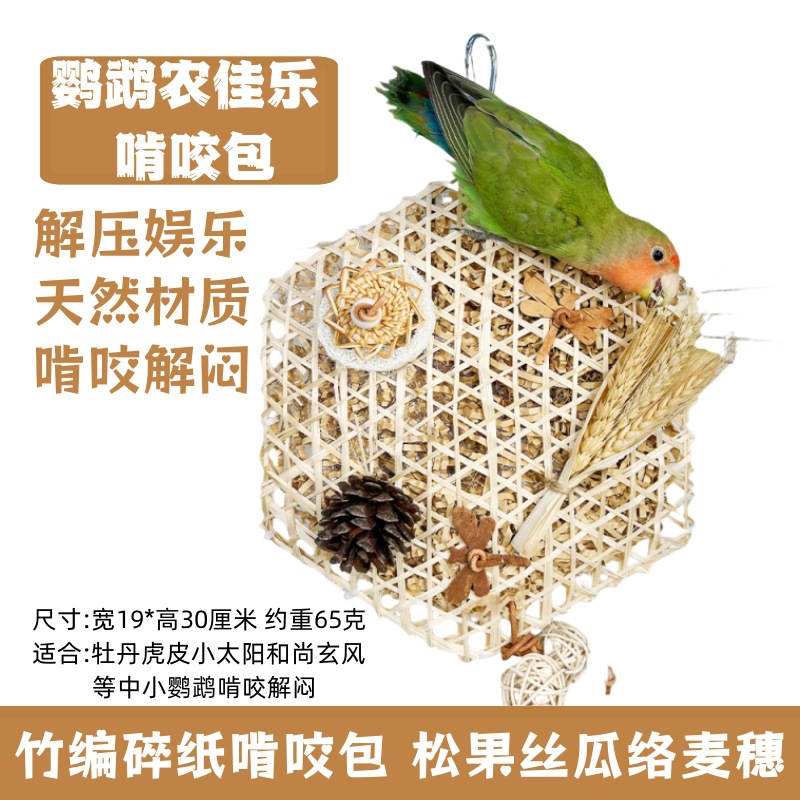 跨境鹦鹉鸟玩具 天然木瓜茎啃咬秋千 鸟笼木片花磨牙解压配件用品