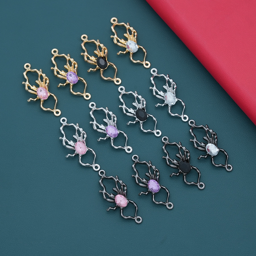 合金電気泳動高保色レトロ小衆双吊点ドリルクモ欧米暗黒怪風個性誇張アクセサリー