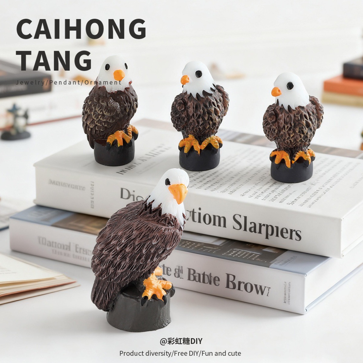 微缩树脂创意DIY饰品立体白头鹰 动物摆件自制猫头鹰挂件配件