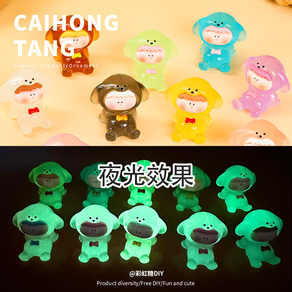 かわいい夜光アニメ樹脂子犬リリスdiy造形アクセサリー車載デスクトップ装飾品卸売り