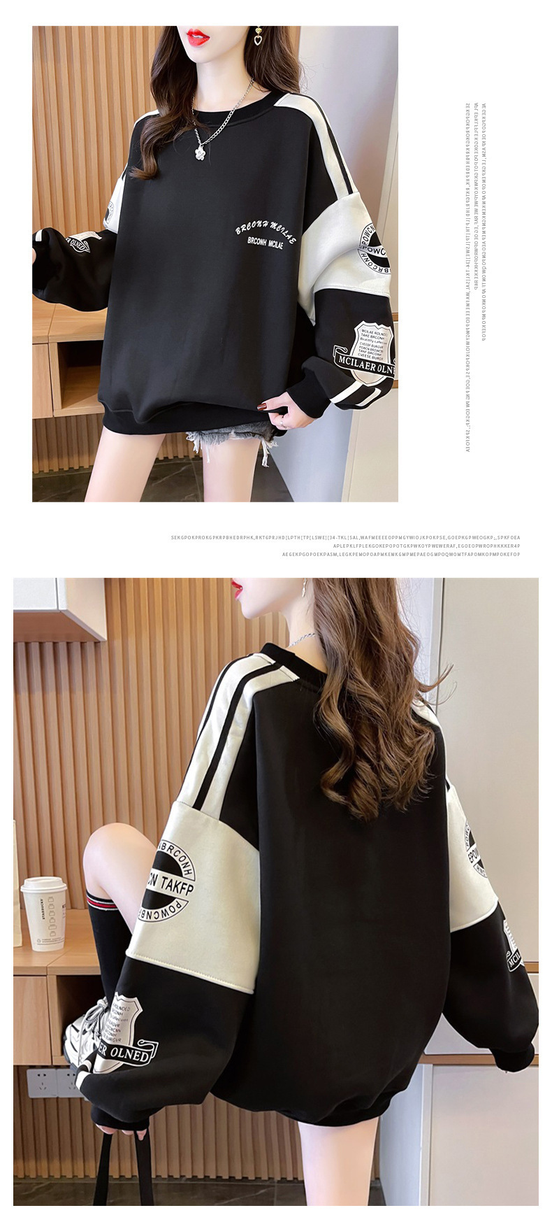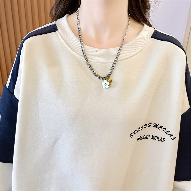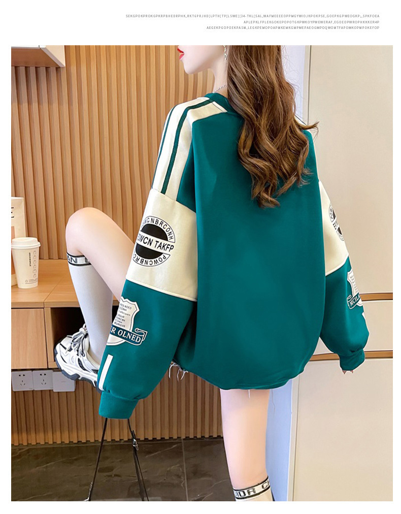 衛衣少女春秋2025新型中学高校の学生はゆったりとしたカジュアルな長袖tシャツの丸首に帽子の上着がありません。