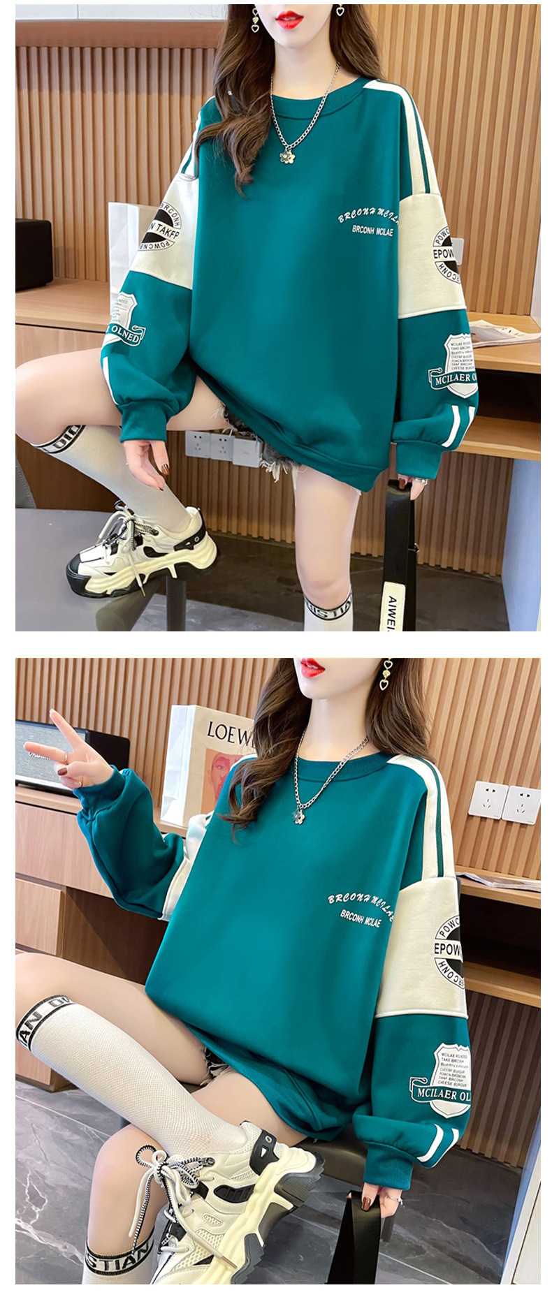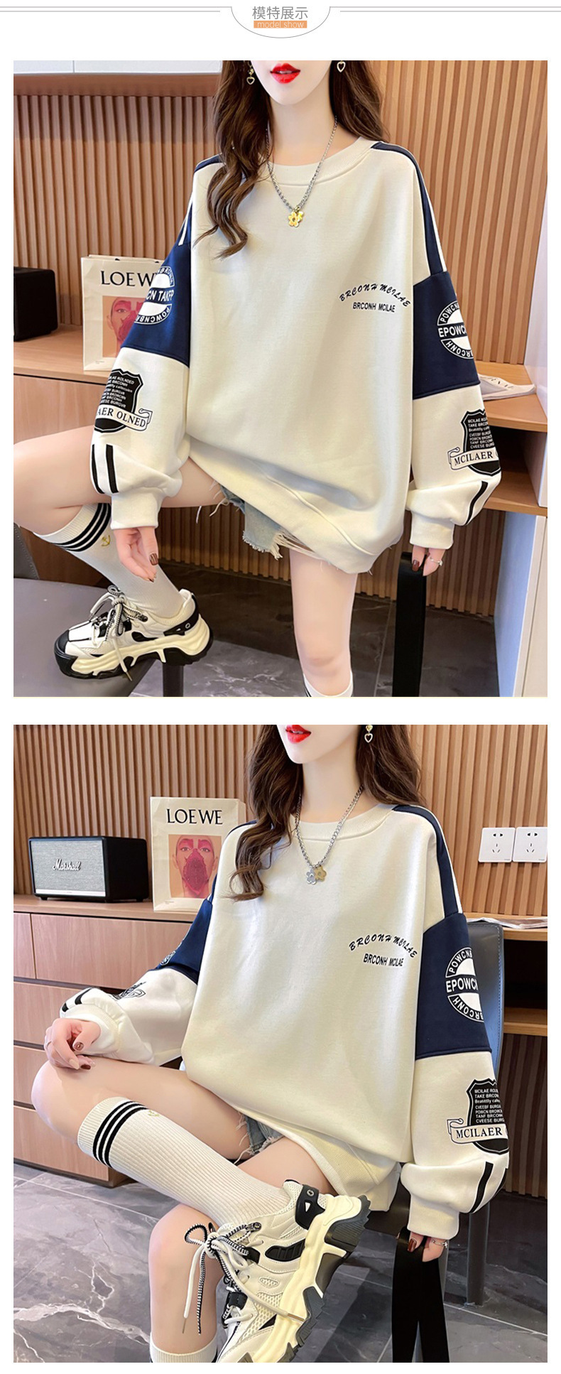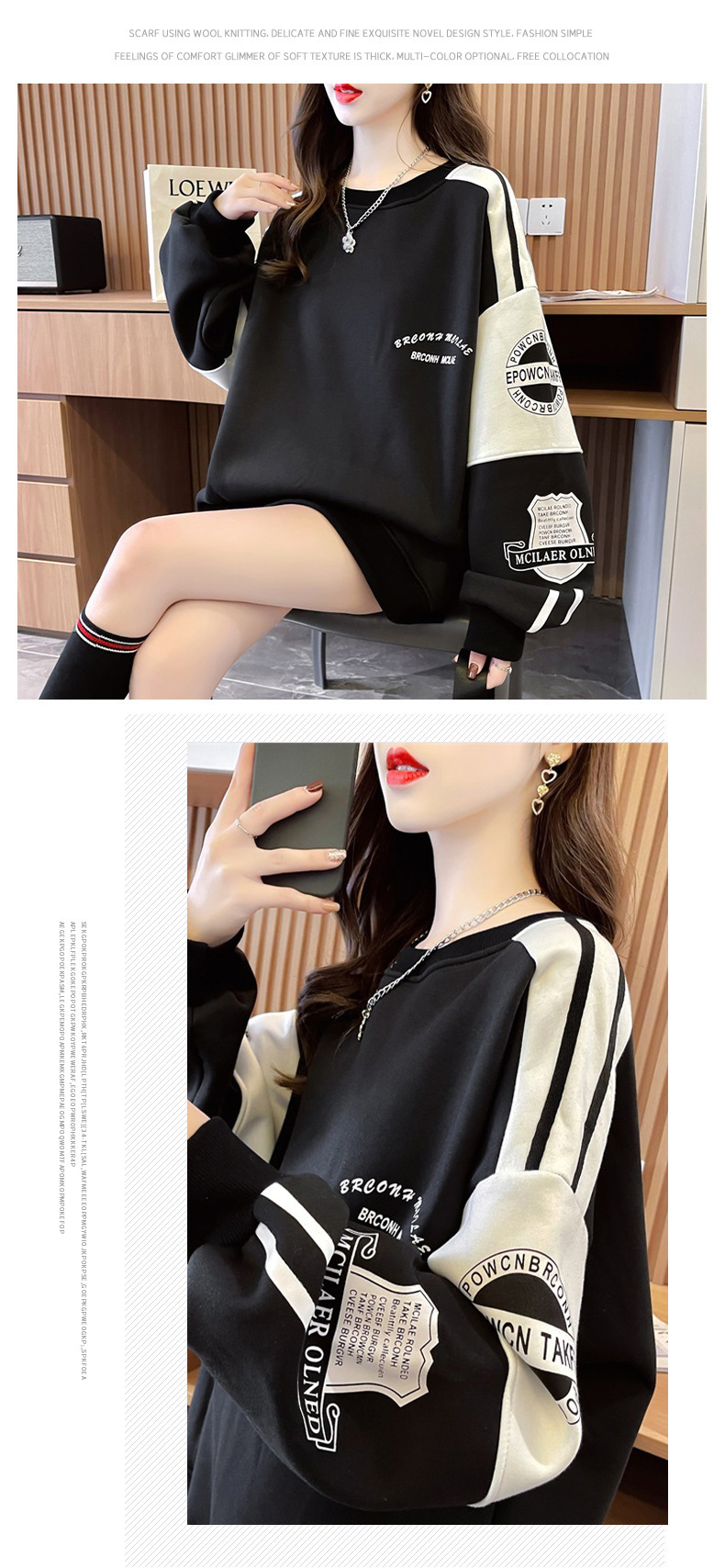 衛衣少女春秋2025新型中学高校の学生はゆったりとしたカジュアルな長袖tシャツの丸首に帽子の上着がありません。
