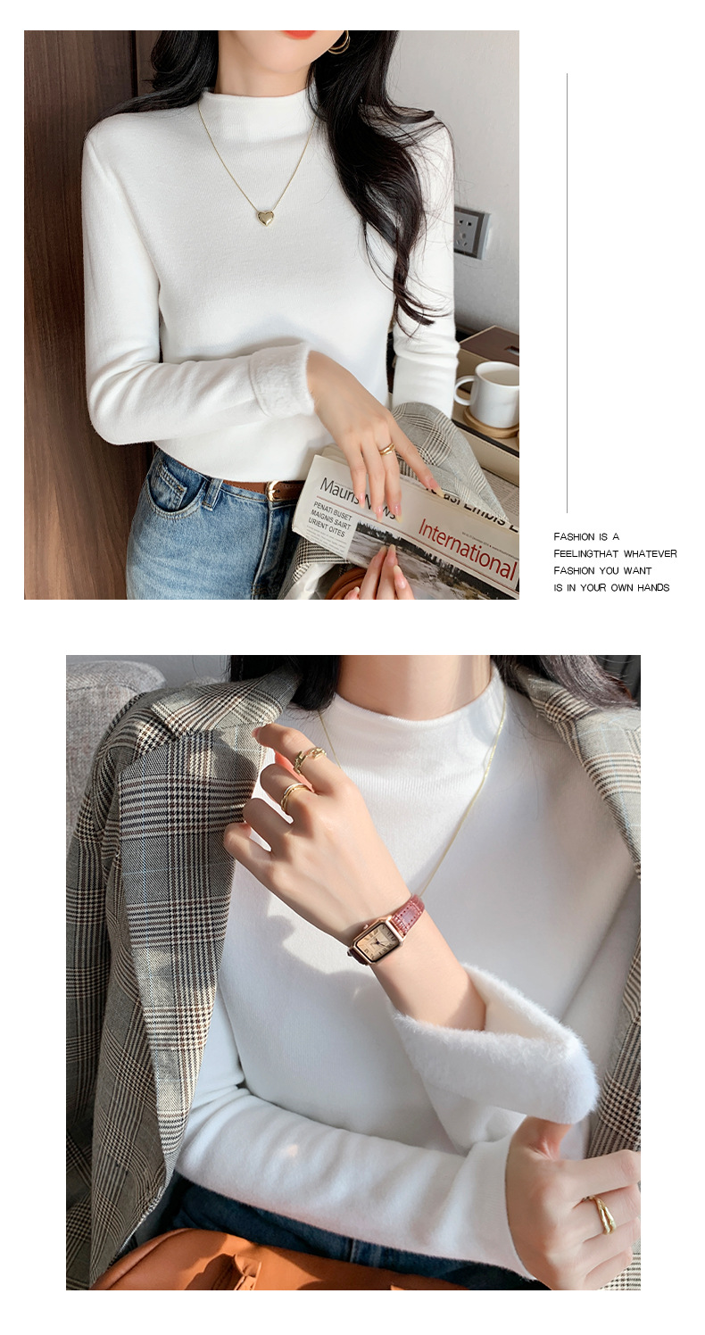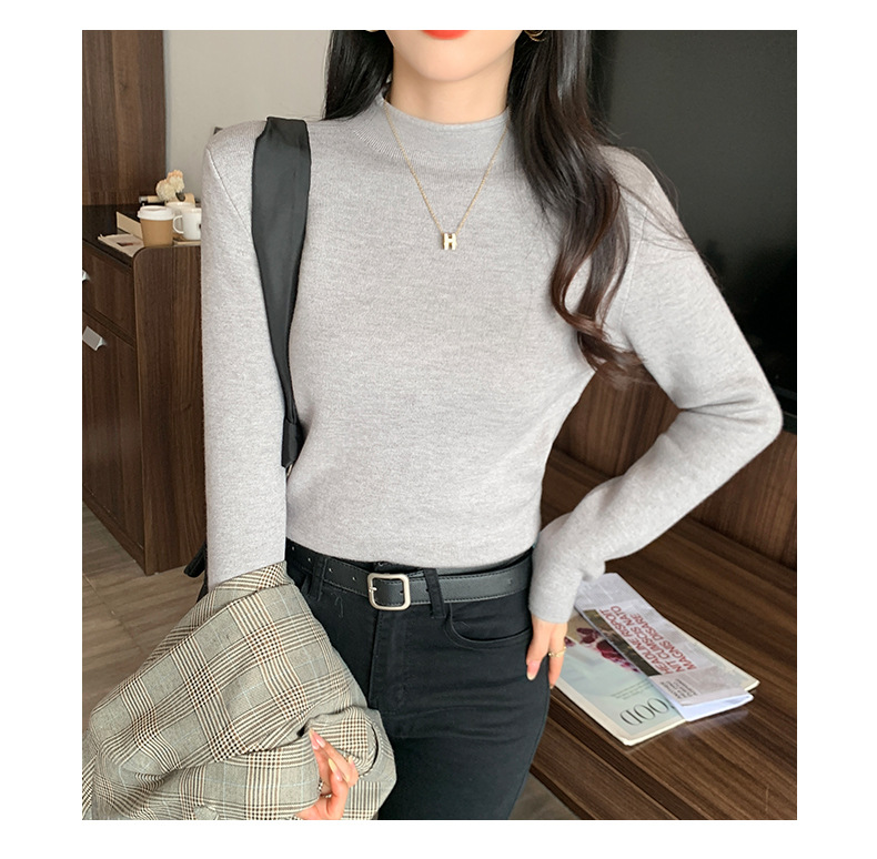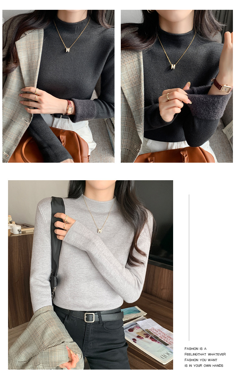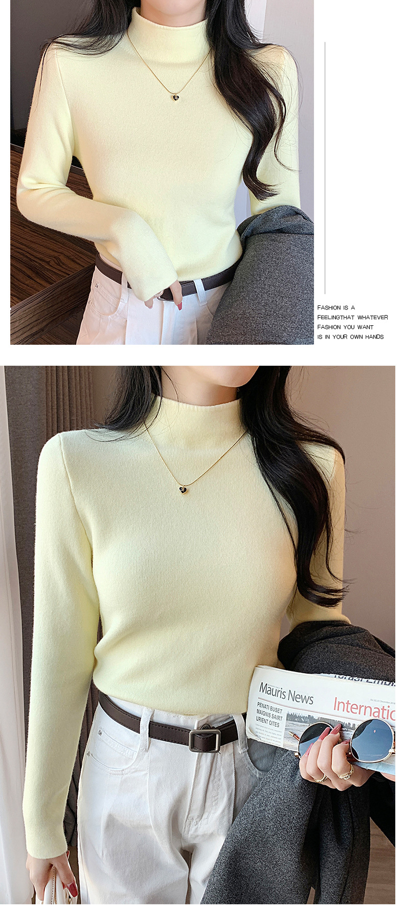 春秋冬新作、柔らかく万能なハーフタートルネック、裏起毛・厚手セーター、レディースインナーウェア、上品なトップス