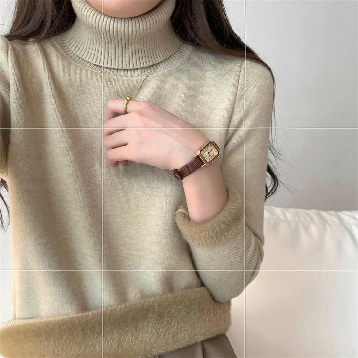 韓国のドーパミンの半分の高さの襟とベルベットの厚い長袖の中にニットの女性の冬の組み合わせの保温のセーターは底を打ちます。